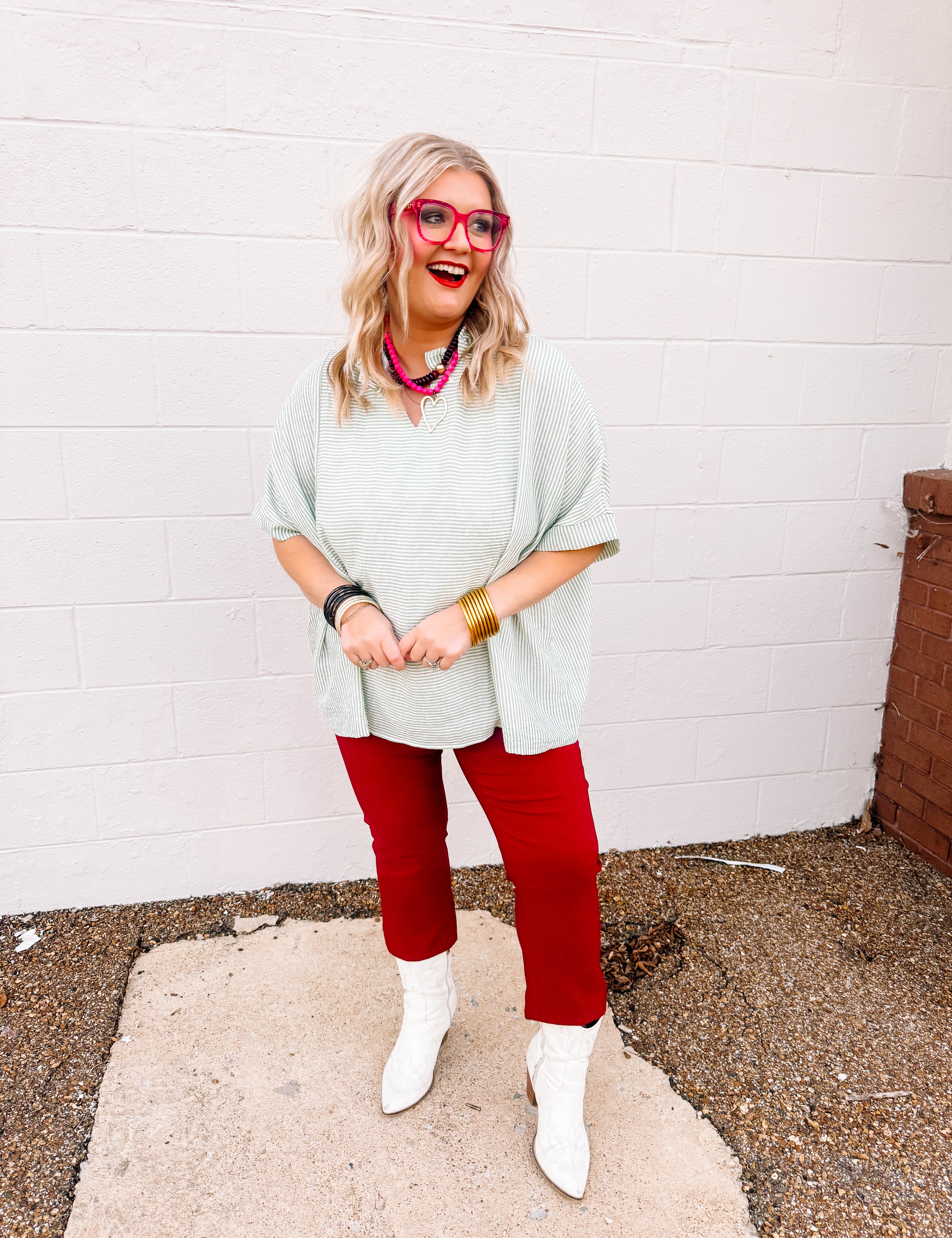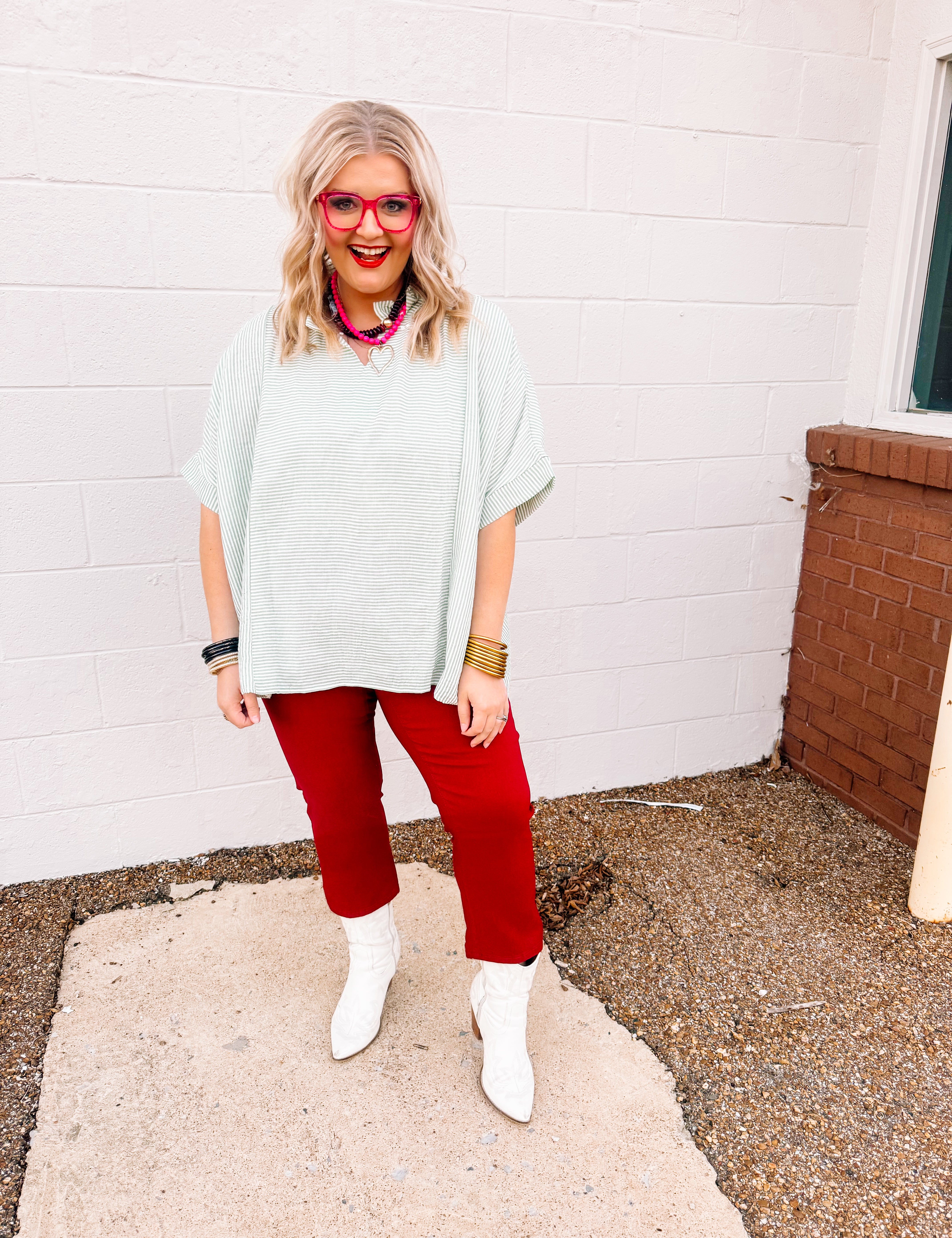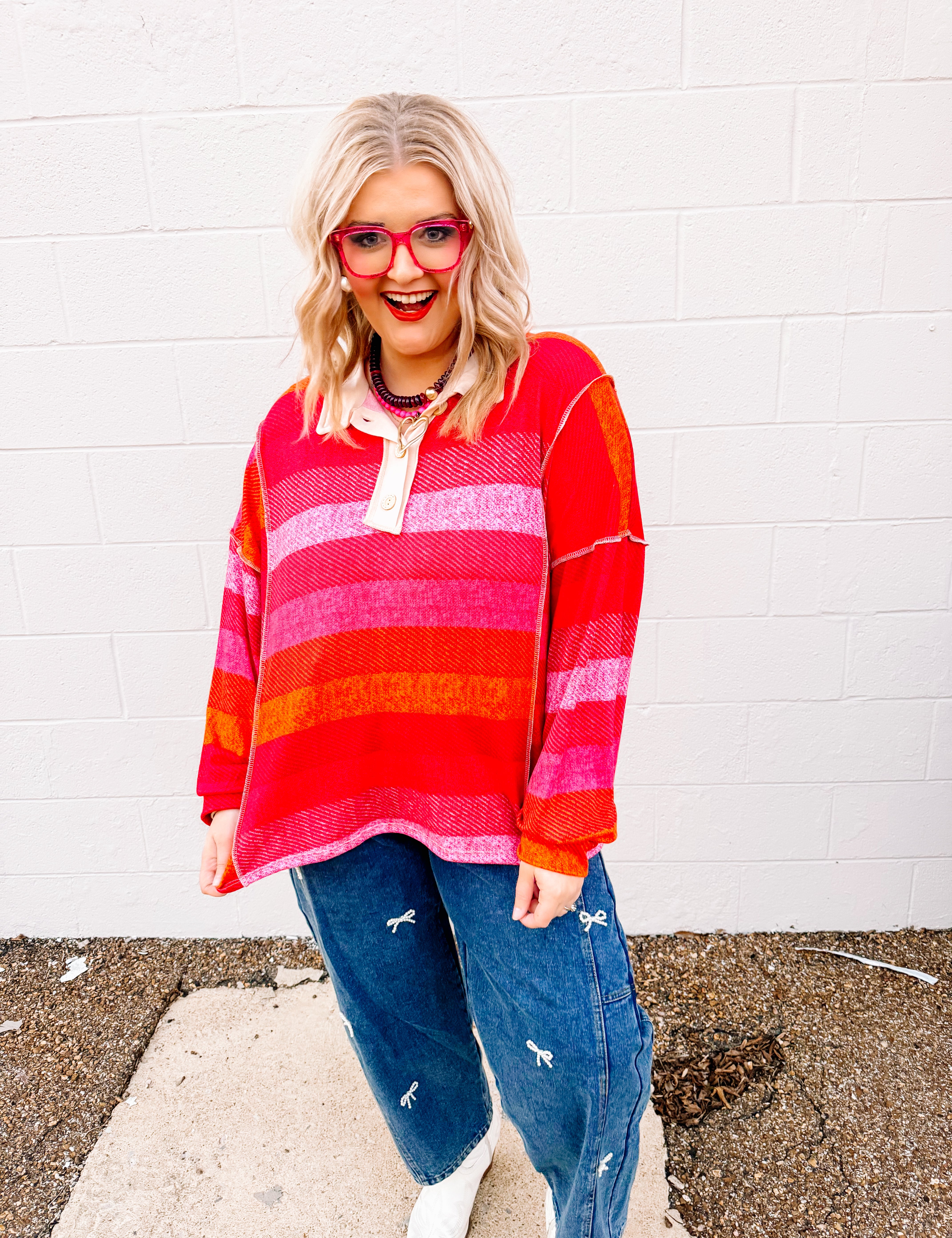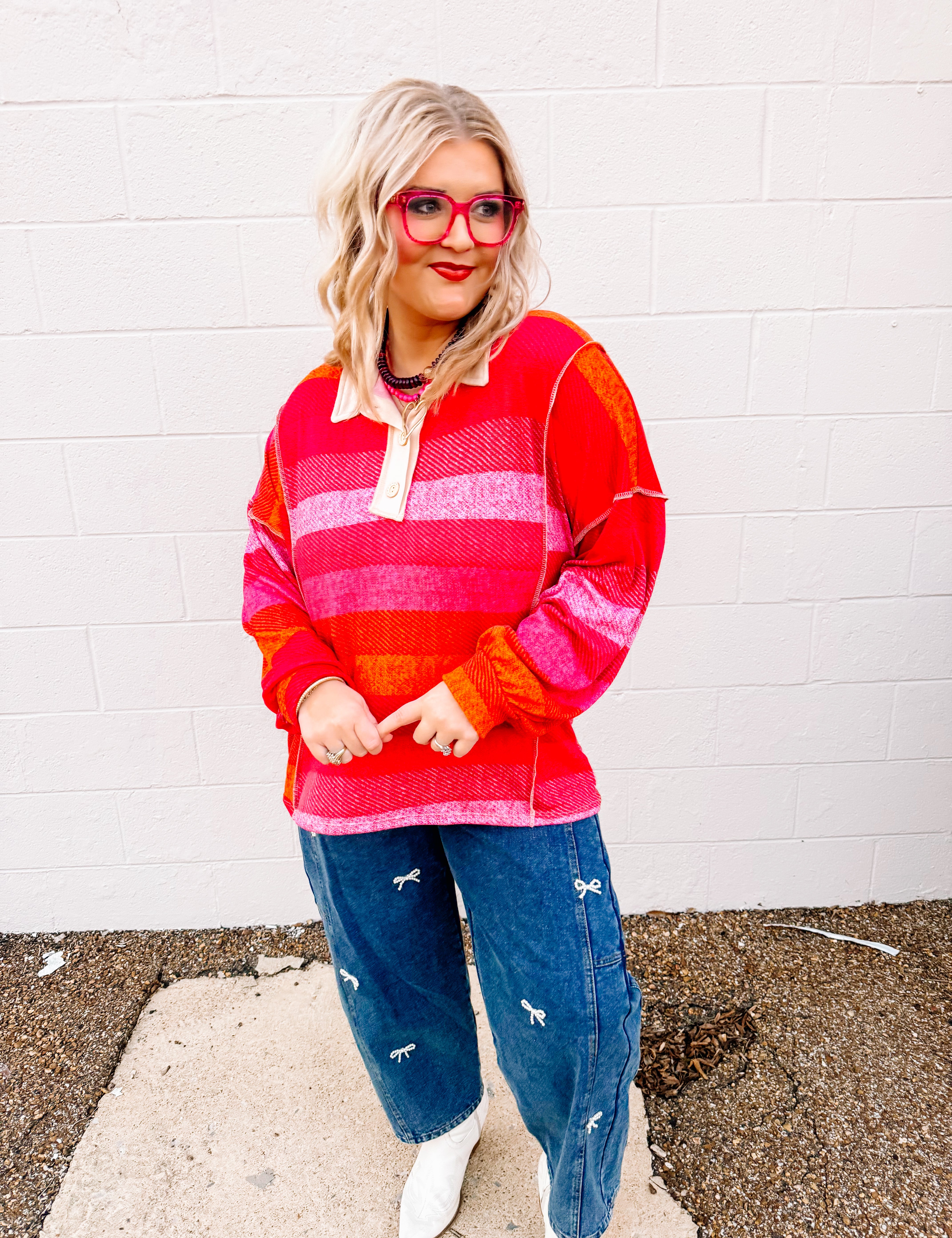 Haptics Pastel Red Striped Top