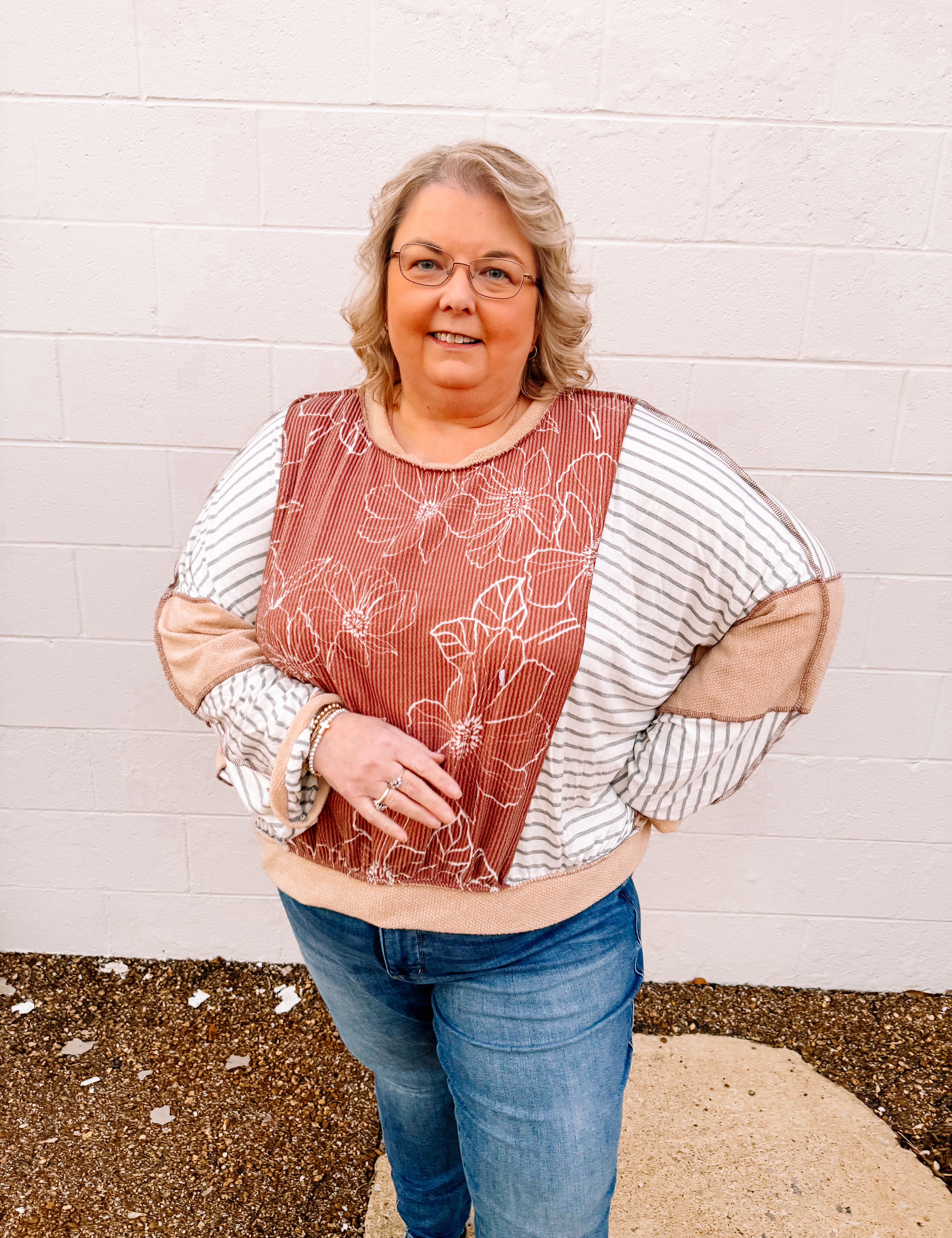 Haptics Soft Striped/Floral Top