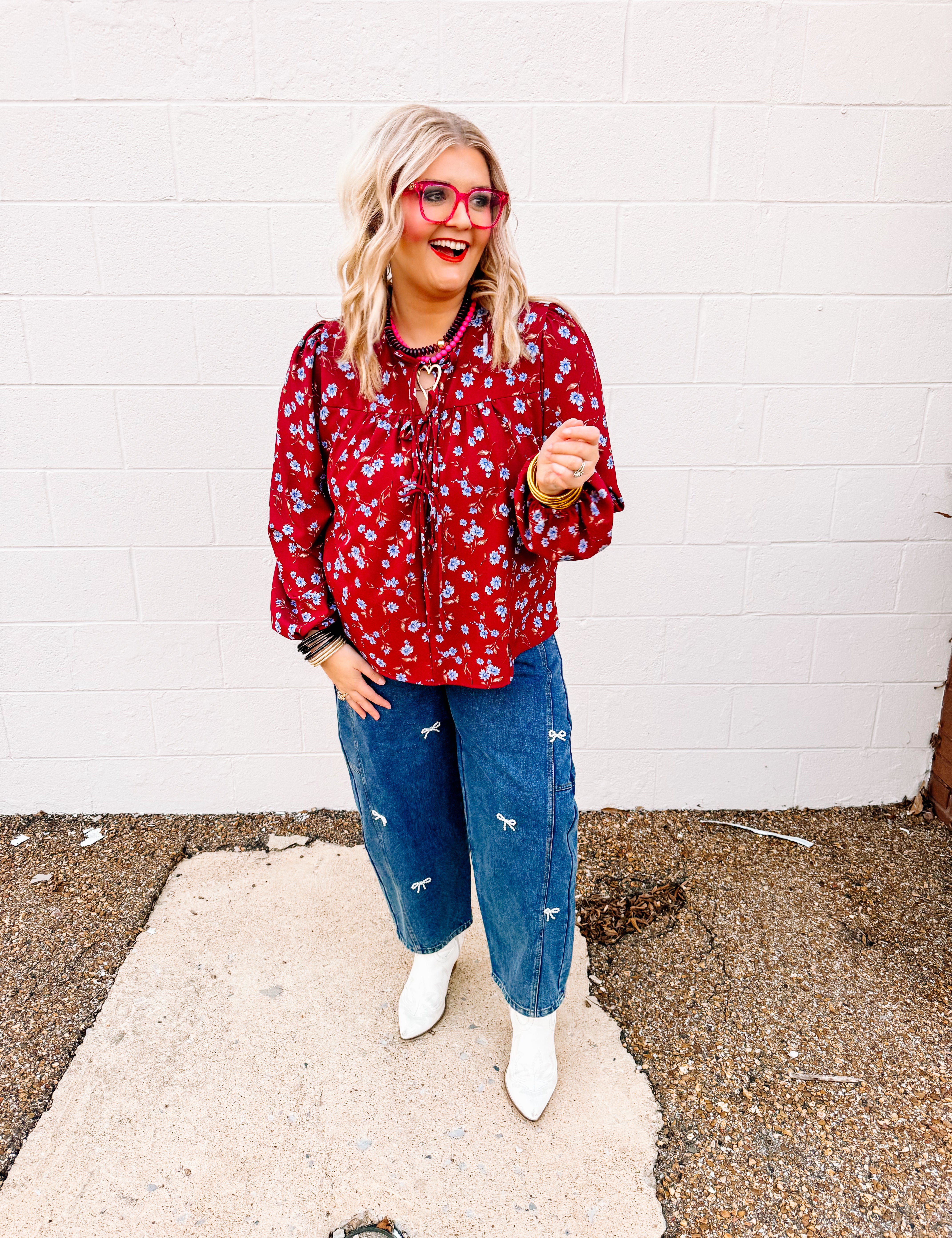 Haptics Burgundy Floral Top