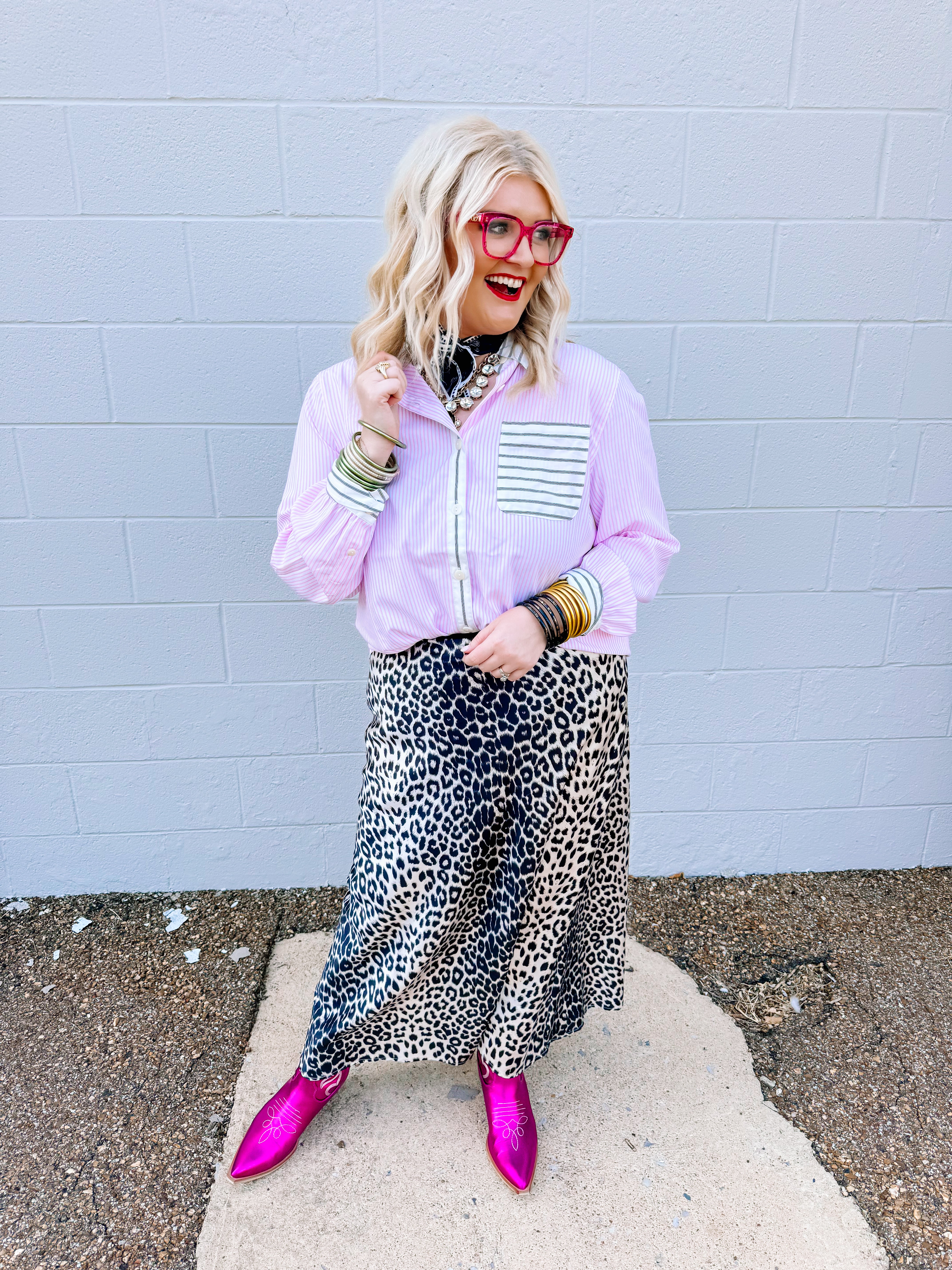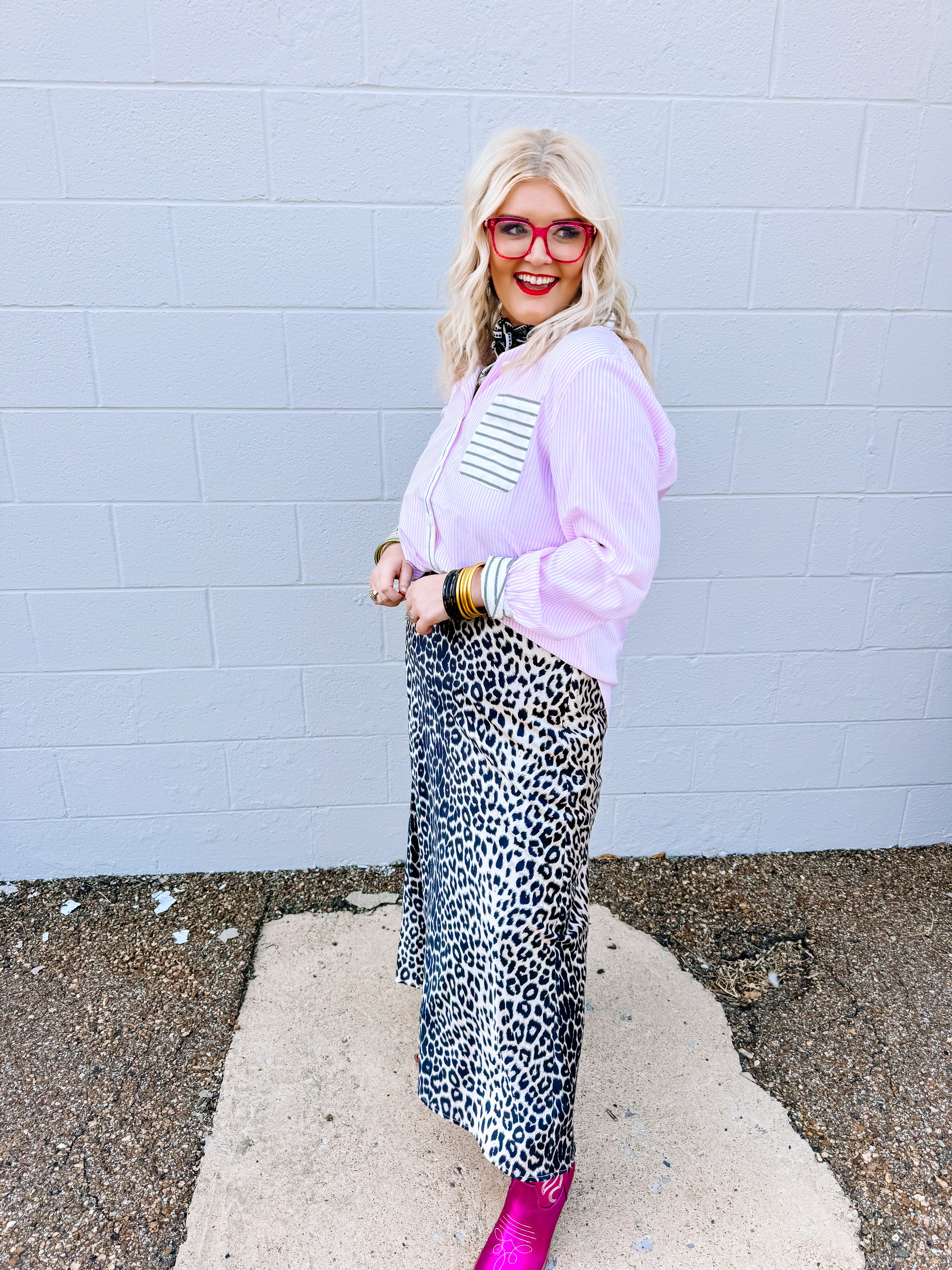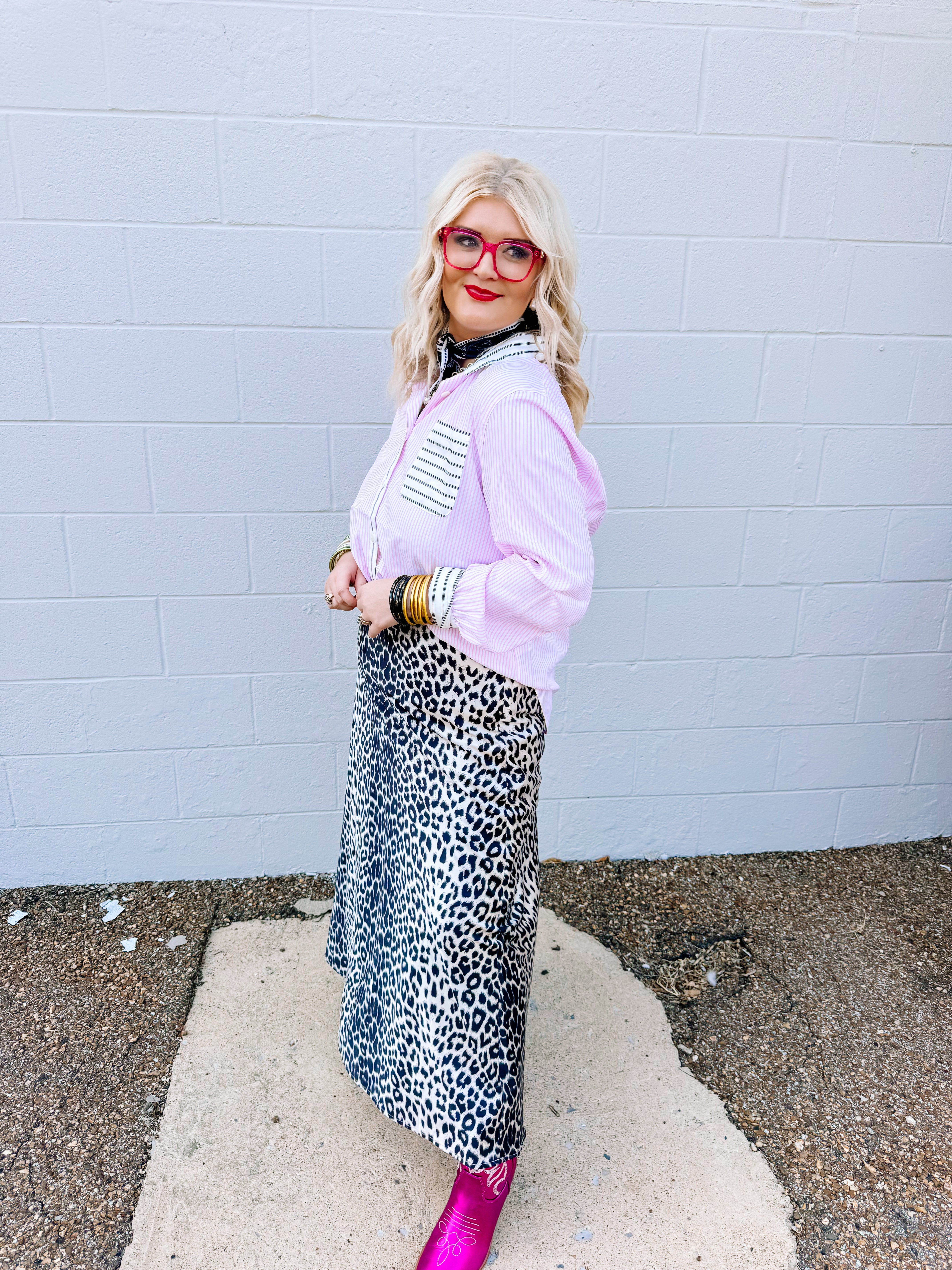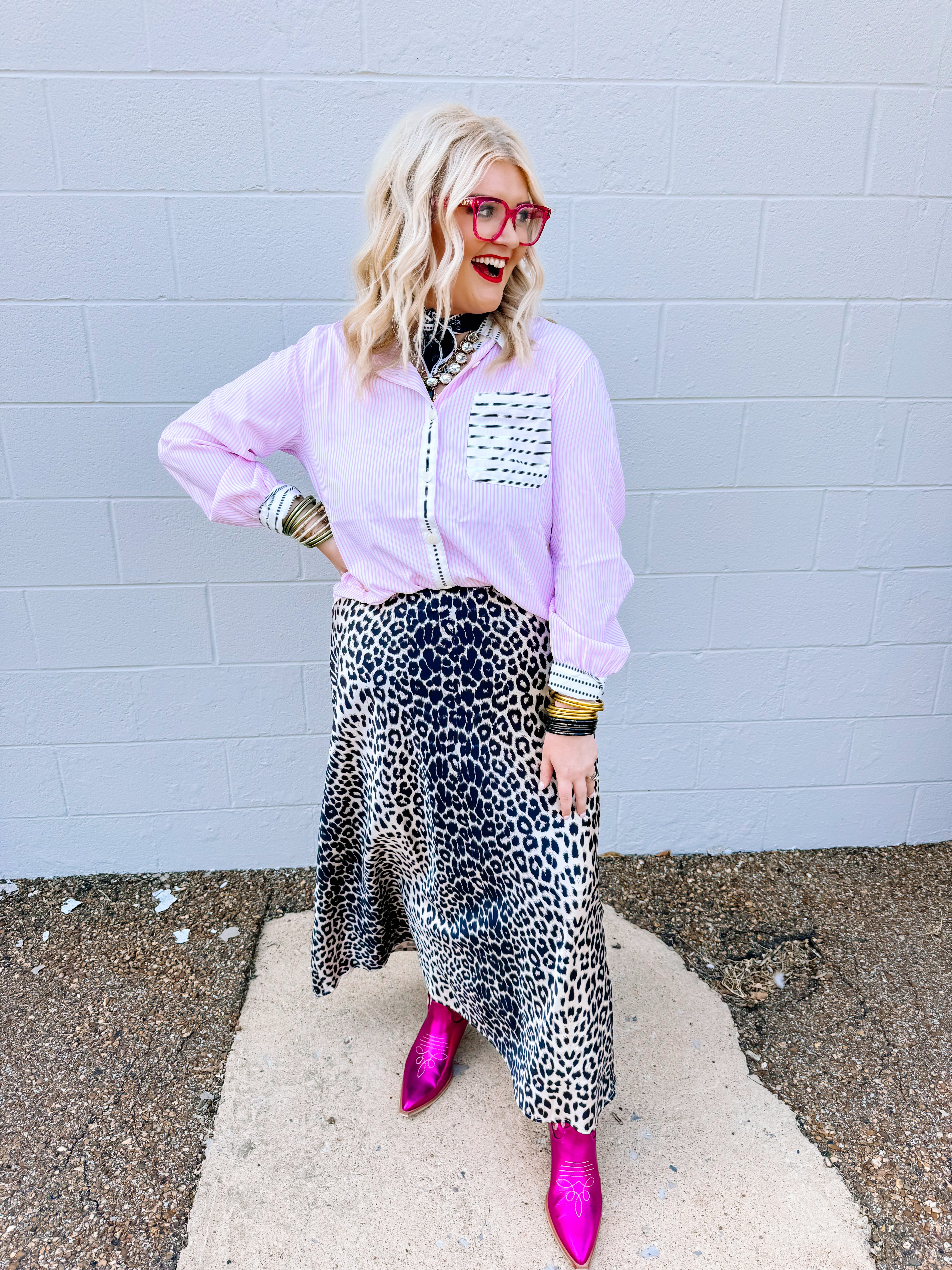 The Oddi Pink Striped Button Down Shirt features a refined striped tiered design enhanced by a contrasting black and white collar, cuffs, and pocket. This sophisticated combination adds a striking visual detail while maintaining classic tailoring, making it an ideal choice for both professional and stylish casual wear.