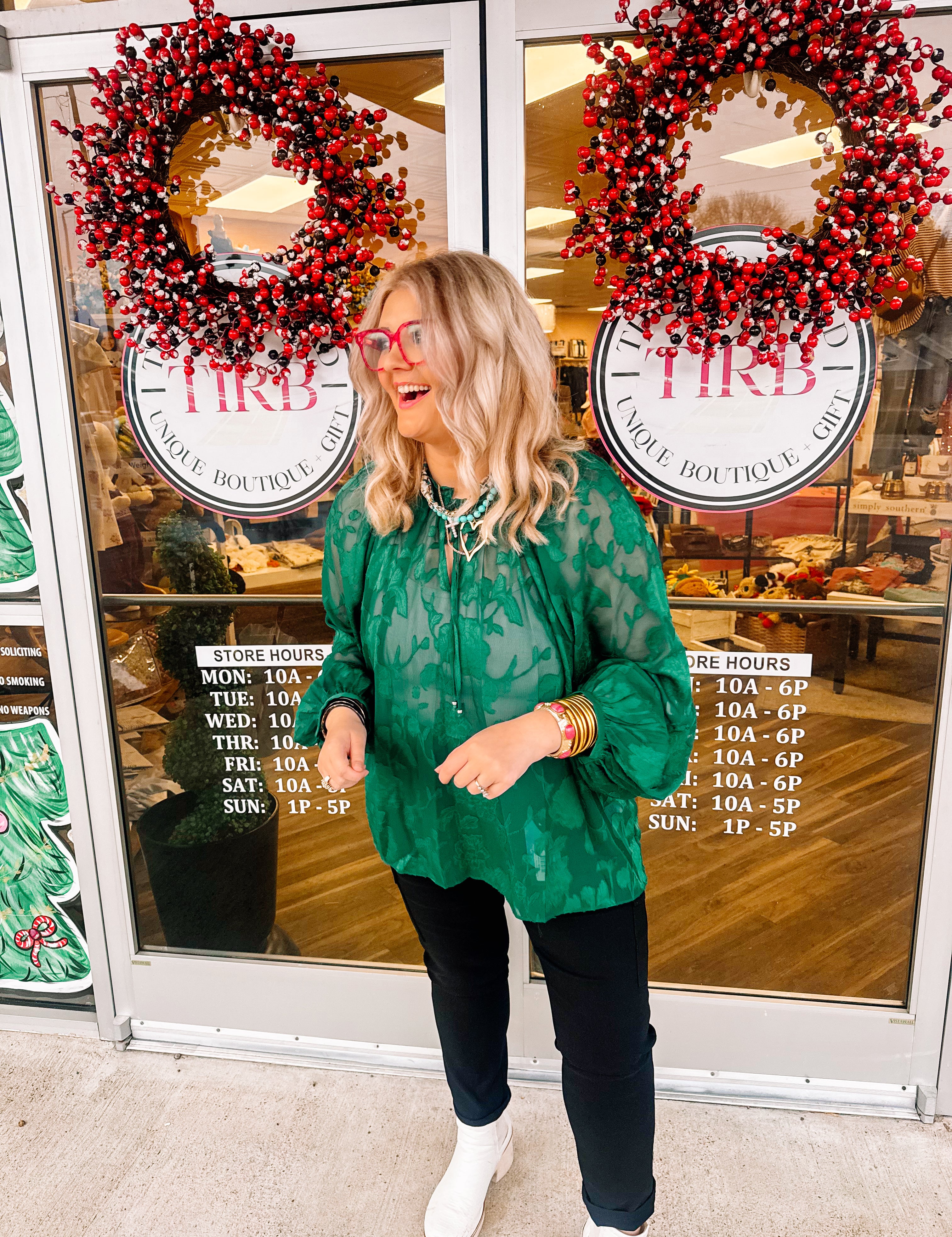 Oddi Hunter Green Jacquard Blouse
