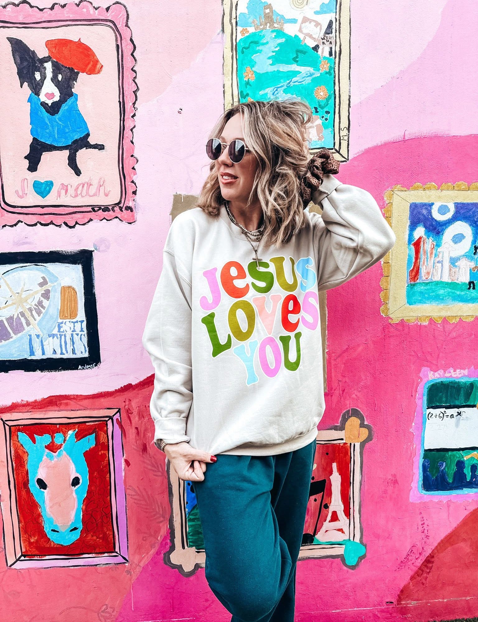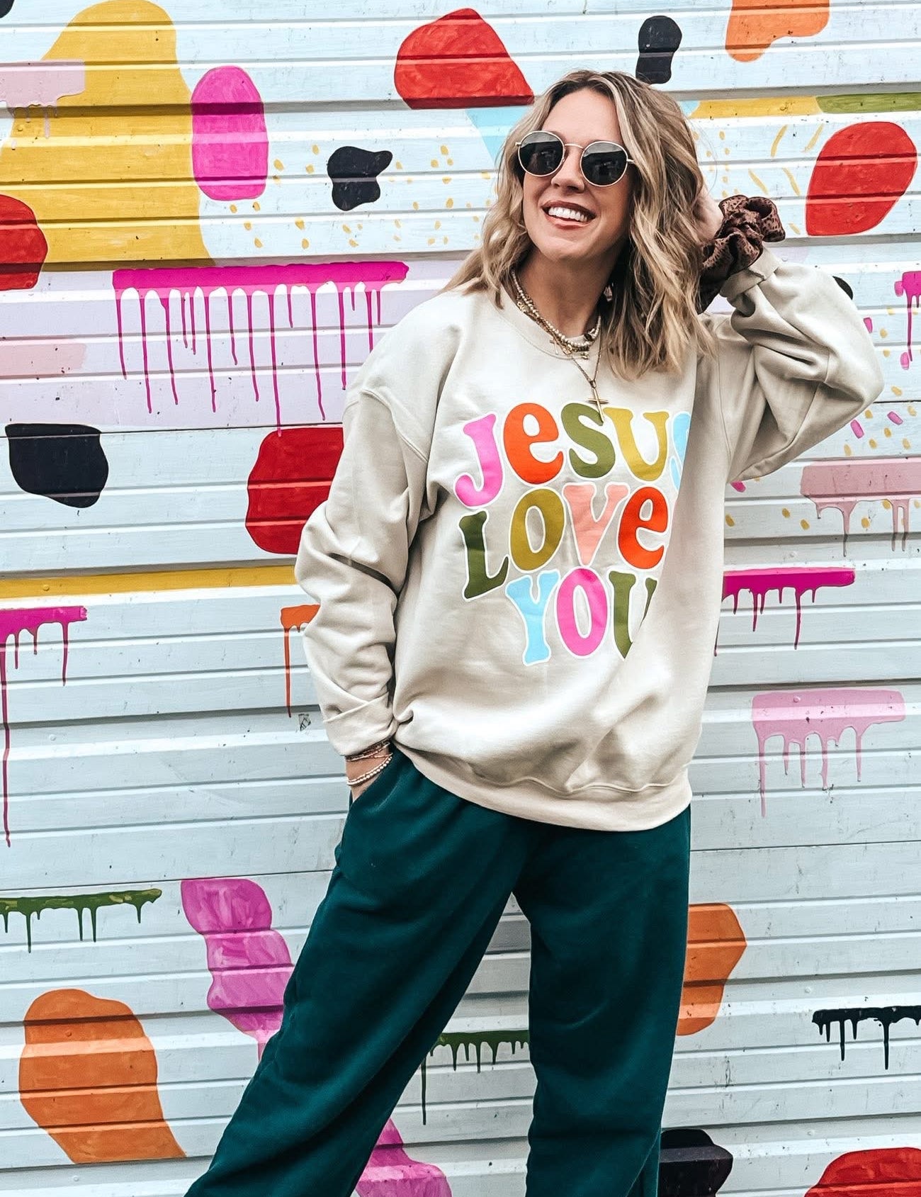 Prickly Pear: Colorful Jesus Loves You Sweatshirt