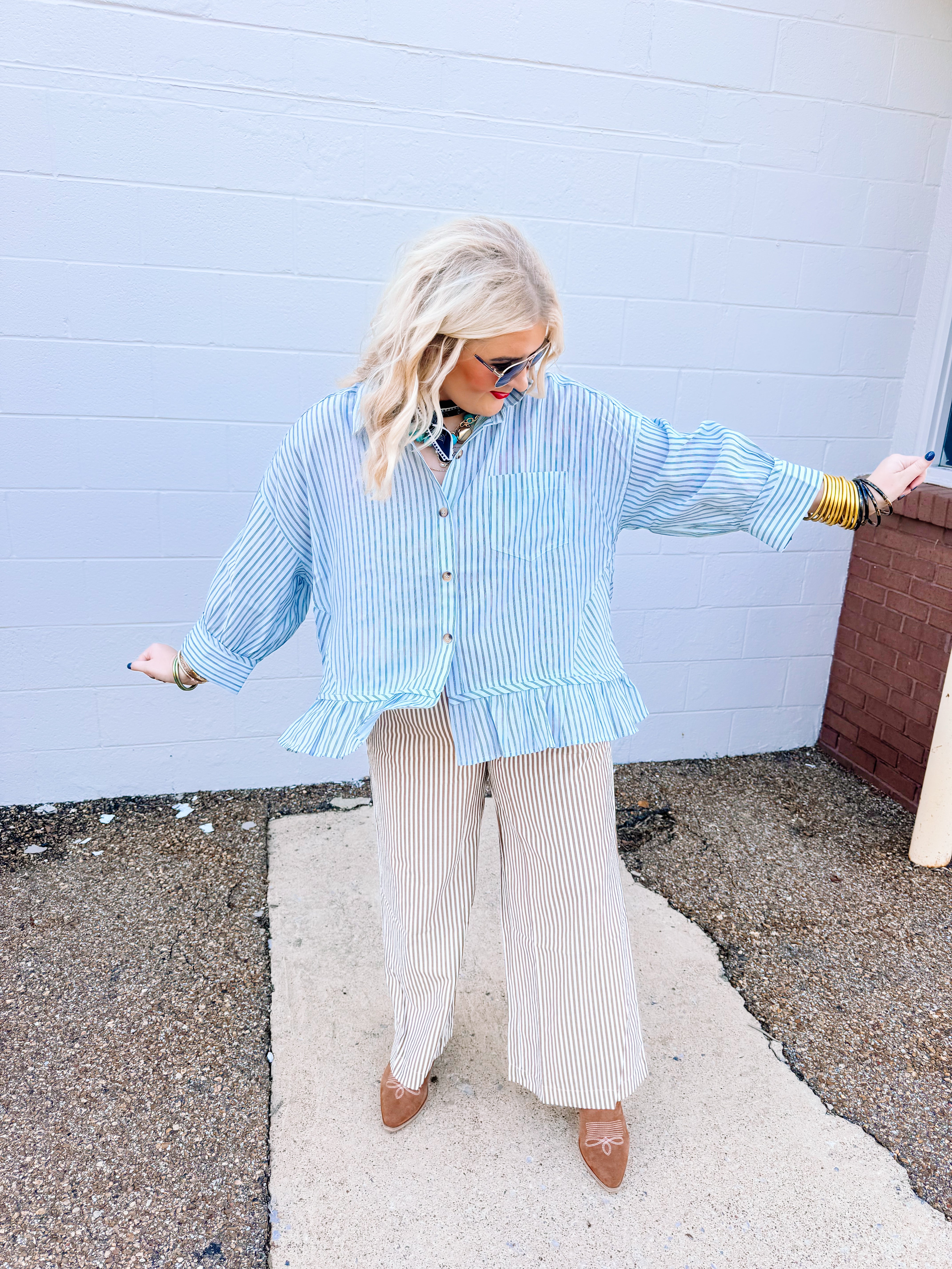 Elevate your wardrobe with the Oddi Brown Striped Pants, designed for a sophisticated yet comfortable look. These wide-leg pants offer a flattering silhouette that enhances movement and breathability, ideal for both casual and polished occasions. Pair seamlessly with the matching Oddi Brown Striped Top to create a cohesive, stylish ensemble that stands out with subtle elegance. Crafted for versatility, these pants provide both structure and ease, making them a refined choice for modern dressing.