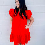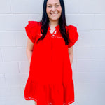 How adorable is the detailing on this Bow Dress! This s a solid poplin babydoll mini dress with a contrast bow embroidery. This dress is available in both red and black and is perfect for Valentines or any date night.