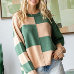 Maybe you don't like red, thats okay! We love shades of green and it's also a perfect color to wear during the Holiday season. We thinking throwing this top on with your jeans or with your leather pants will dress it up for a great Holiday look. This top is featuring; a RELAXED FIT KNITTED SWEATER FEATURING RIBBED ROUND NECKLINE, DROPPED SHOUDLER LONG SLEEVES, AND EXPOSED SEAM DETAIL.