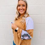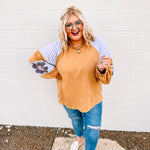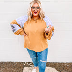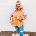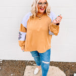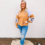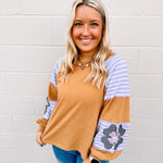 We love love love this top! We love the oversized fit and these colors pair so perfectly together to give us all our inner boho needs and wants! This top is featuring a french terry pullover with seam detailing and contrasting colors.