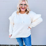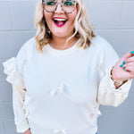 Bows are a girls best friend! e love bows and we love how soft and sweet this top is. Long sleeve style with a ruffle cap attached to the sleeve. This a crew style material and the waistband is not tight. We do suggest if you want an oversized look to size up.