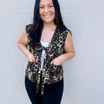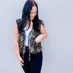 Add a little Leopard to your outfit any season. Our washed leopard printed vest with tie detailing and red contrast stitching. A beautiful addition to any outfits. Grab your favorite white or cream top with black denim and throw this over to hav a chic look.