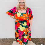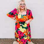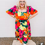 One of the prettiest Fall floral dress! This floral printed bubble sleeve midi dress with smocked shoulder and back details is perfect for all the Fall Formal needs. The back in smocked which give you all more room through the chest.