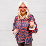 Elevate your wardrobe with the Oddi Black Long Sleeve Blouse, featuring a delicate floral print that adds subtle sophistication. Designed with a wide collar edged in a distinctive wavy binding and a front tie, this blouse offers a refined silhouette and adjustable fit. The long sleeves provide versatile coverage, making it ideal for both professional settings and elegant casual wear. Crafted to combine style and comfort, this blouse is a timeless addition to any collection.