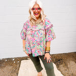 Oddi Olive Floral Blouse