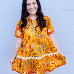 Tropical and Beachy prints are in for Spring and Summer! Our "Take Me to an Island Dress" is a conversational printed short sleeve baby doll mini dress with ric rac lace trim. We this dress is perfect for all your upcoming Summer Vacations!