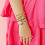 Beaded Blondes 2024 Holiday Bracelet. Add some color to your stack! This bracelet is made with colorful czech glass beads and 2.5mm 14k gold filled beads! ✨