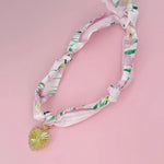 A garden party for your neckline! These scarf necklaces feature a pink tropical floral print and a radiant sunburst heart charm design to shine with every step you take.