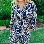 Fall Tropics Printed Dress in Navy