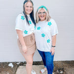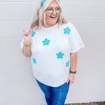 Beautfiul flower patch top. We all love this style top with the 3D look. Great for any time of the year. Pair with your jeans or your taupe colored pants.