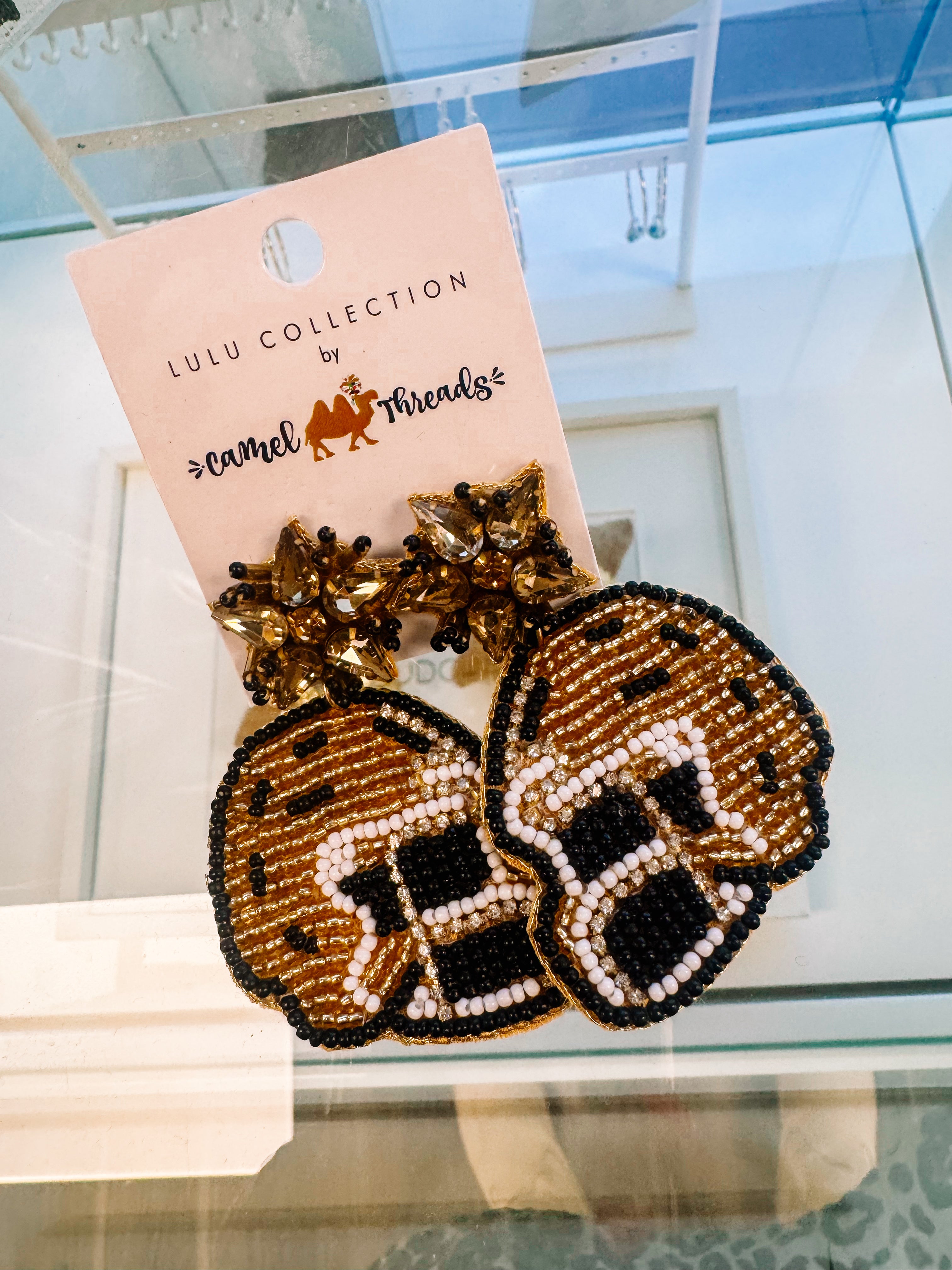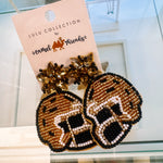 These gold football earrings feature a finely crafted football charm suspended from a delicate star-shaped stud. Their elegant dangle design combines sporty flair with sophisticated detail, making them an ideal accessory for football enthusiasts seeking a polished, expert look. Perfect for game day or everyday wear, they add a subtle yet distinctive touch of charm and style.