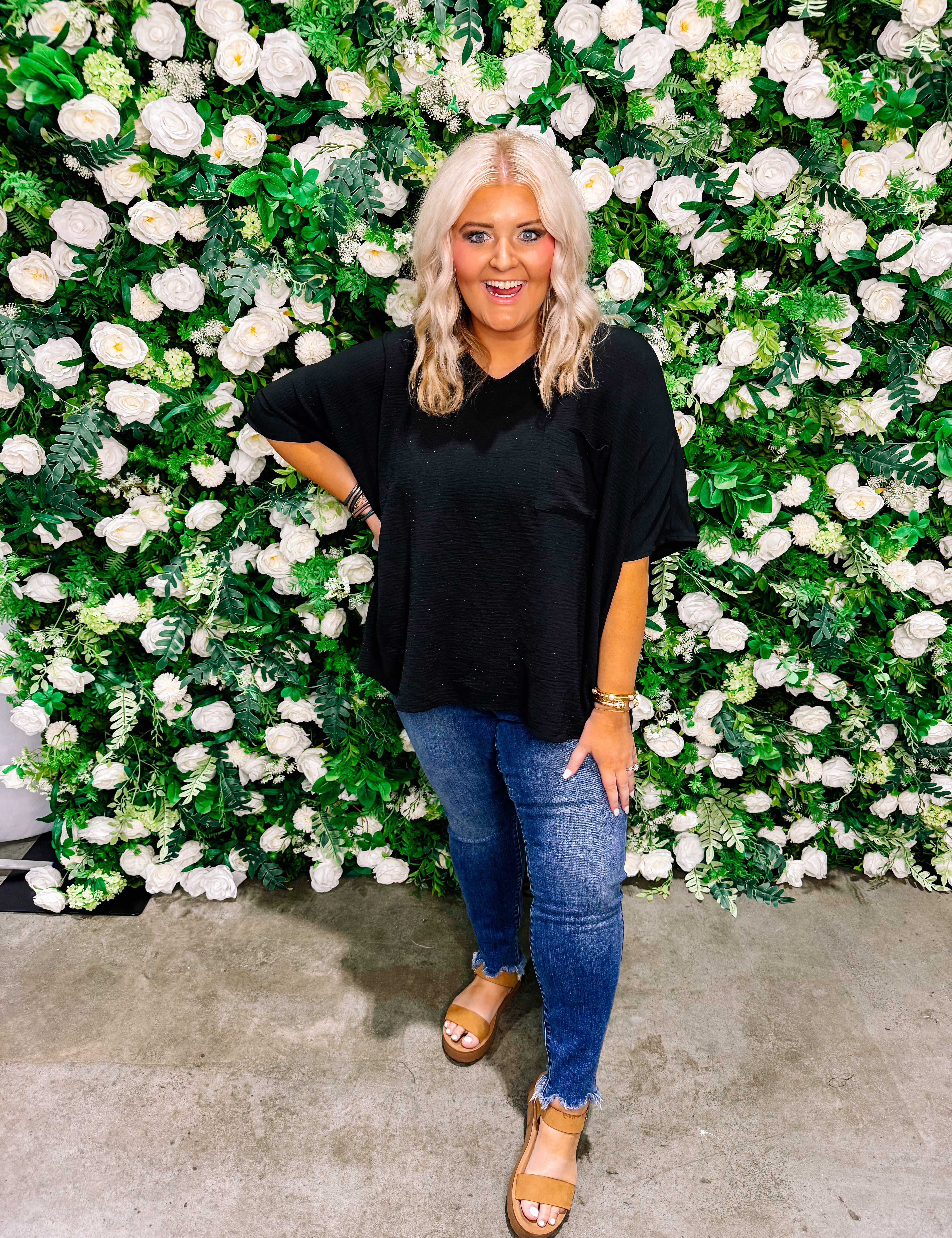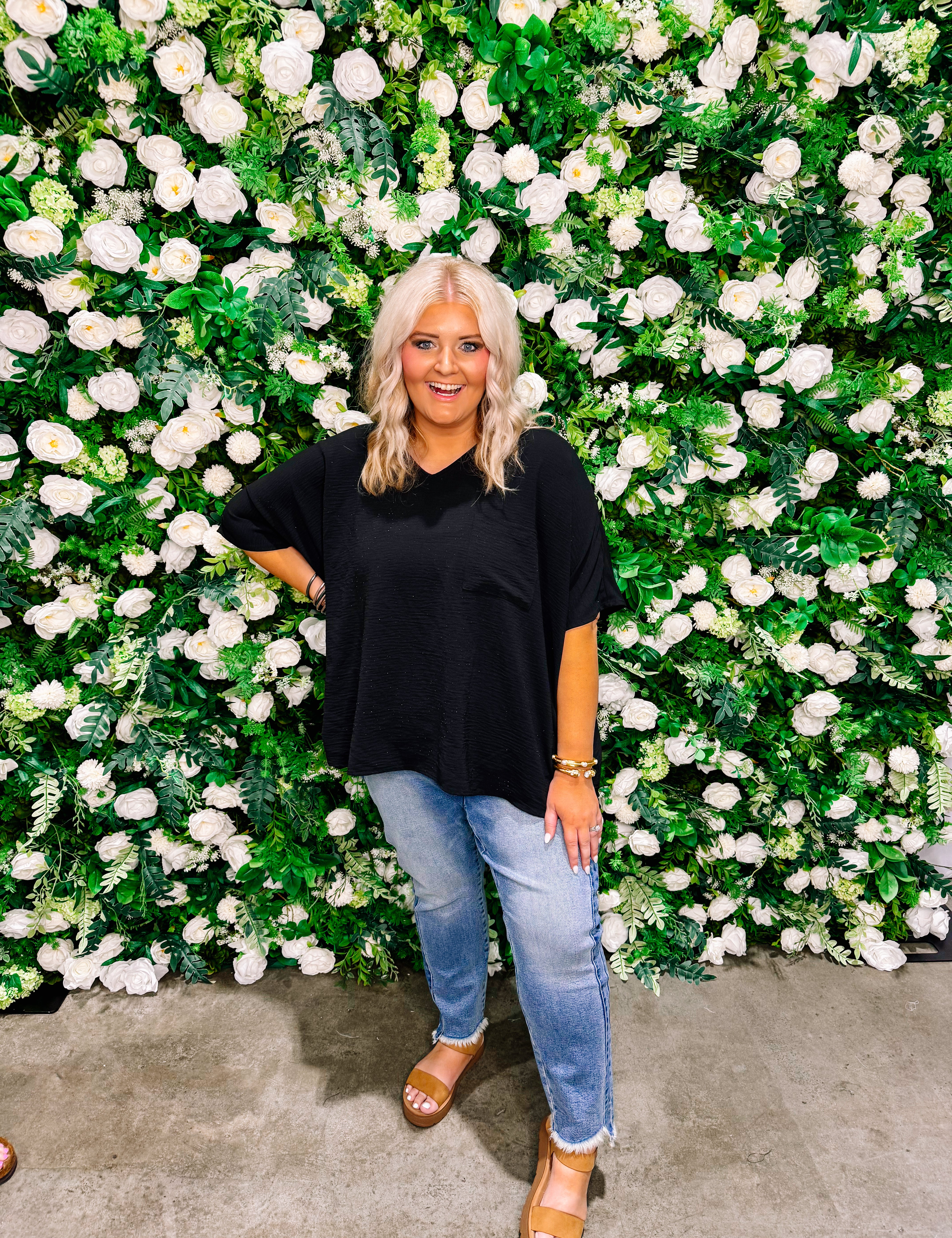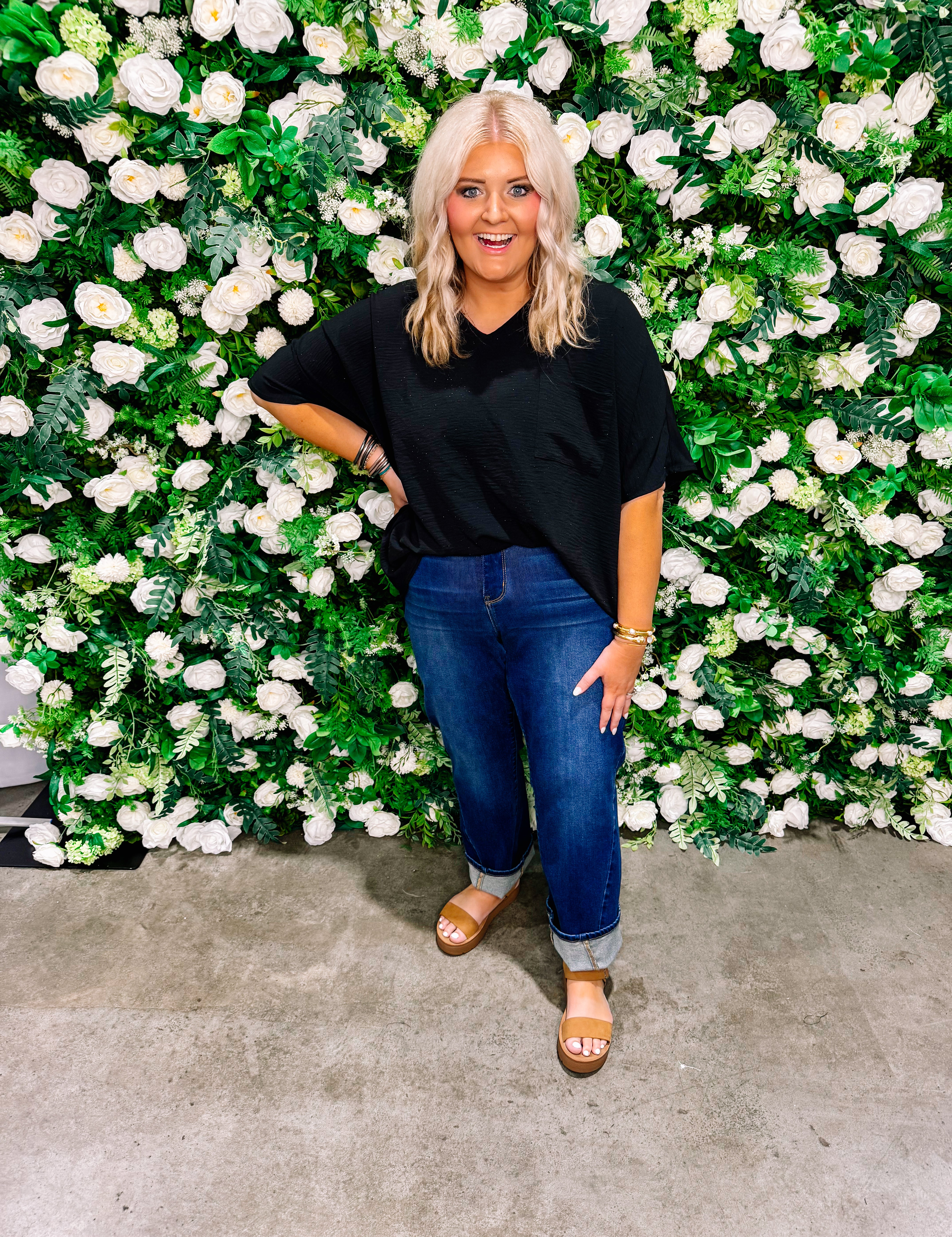 82617 REGULAR/PLUS BLACK WIDE LEG CUFF JEANS