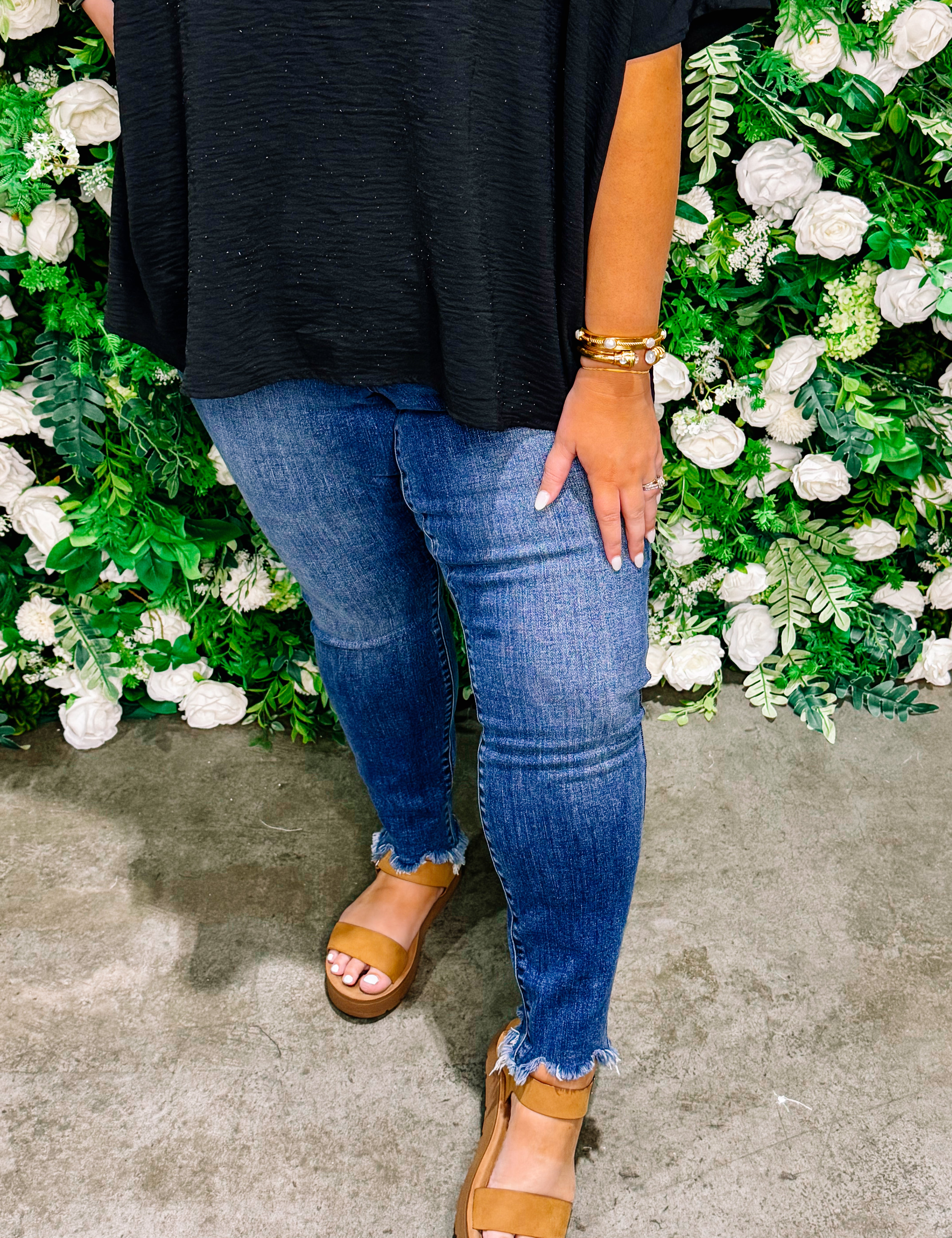 82491 REGULAR/PLUS BLUE SKINNY SHARK BITE HEM JEANS