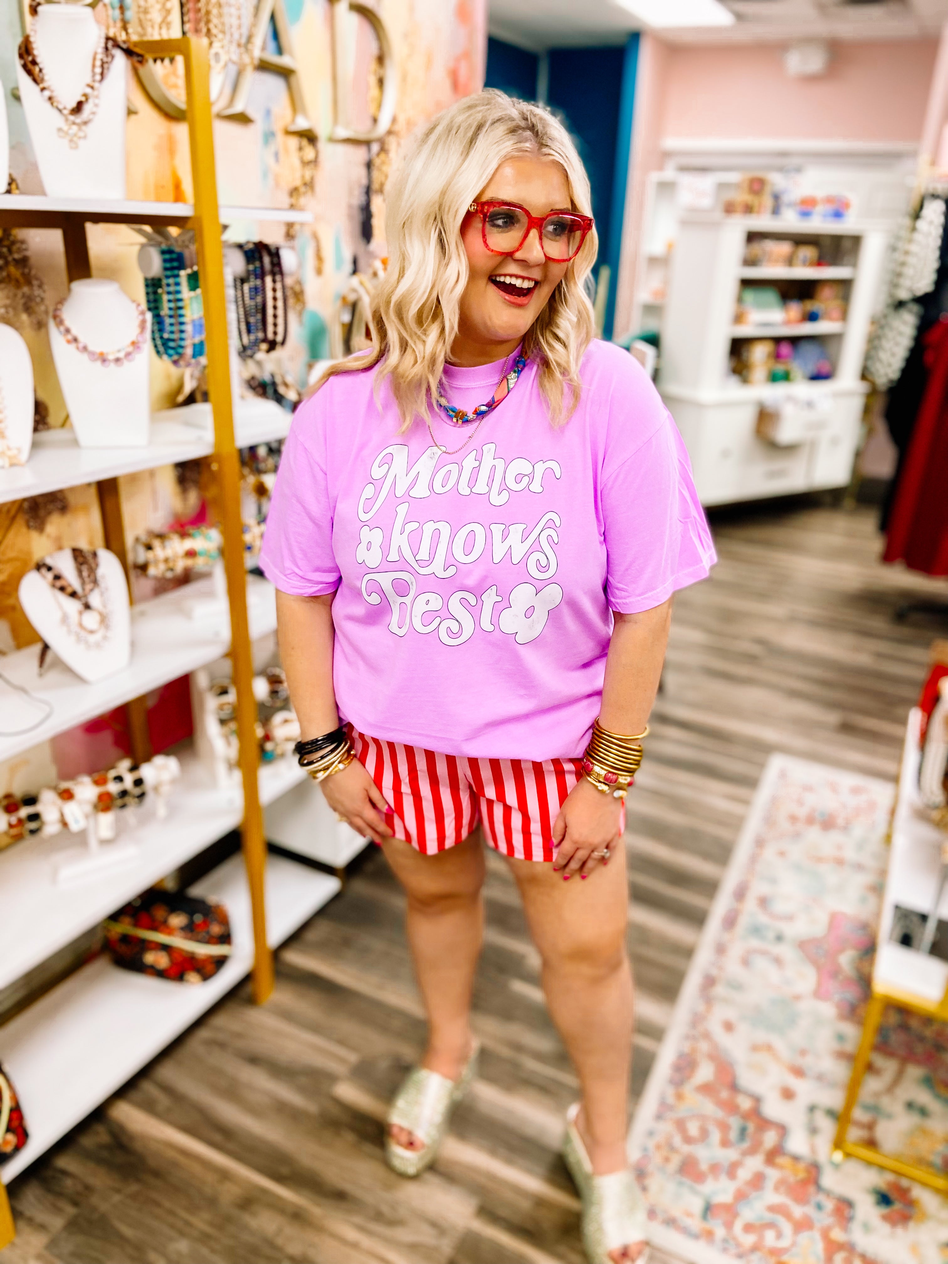 Embrace timeless wisdom in this Mother Knows Best Tee, crafted from premium Comfort Colors fabric for exceptional softness and durability. The classic, purple, short-sleeve design features "Mother Knows Best" emblazoned across the chest in crisp white lettering with a charming, retro-inspired font that evokes nostalgic appeal. Perfect for everyday wear, this tee combines comfort with meaningful style—ideal for gifting or personal wear that celebrates maternal wisdom with understated elegance.