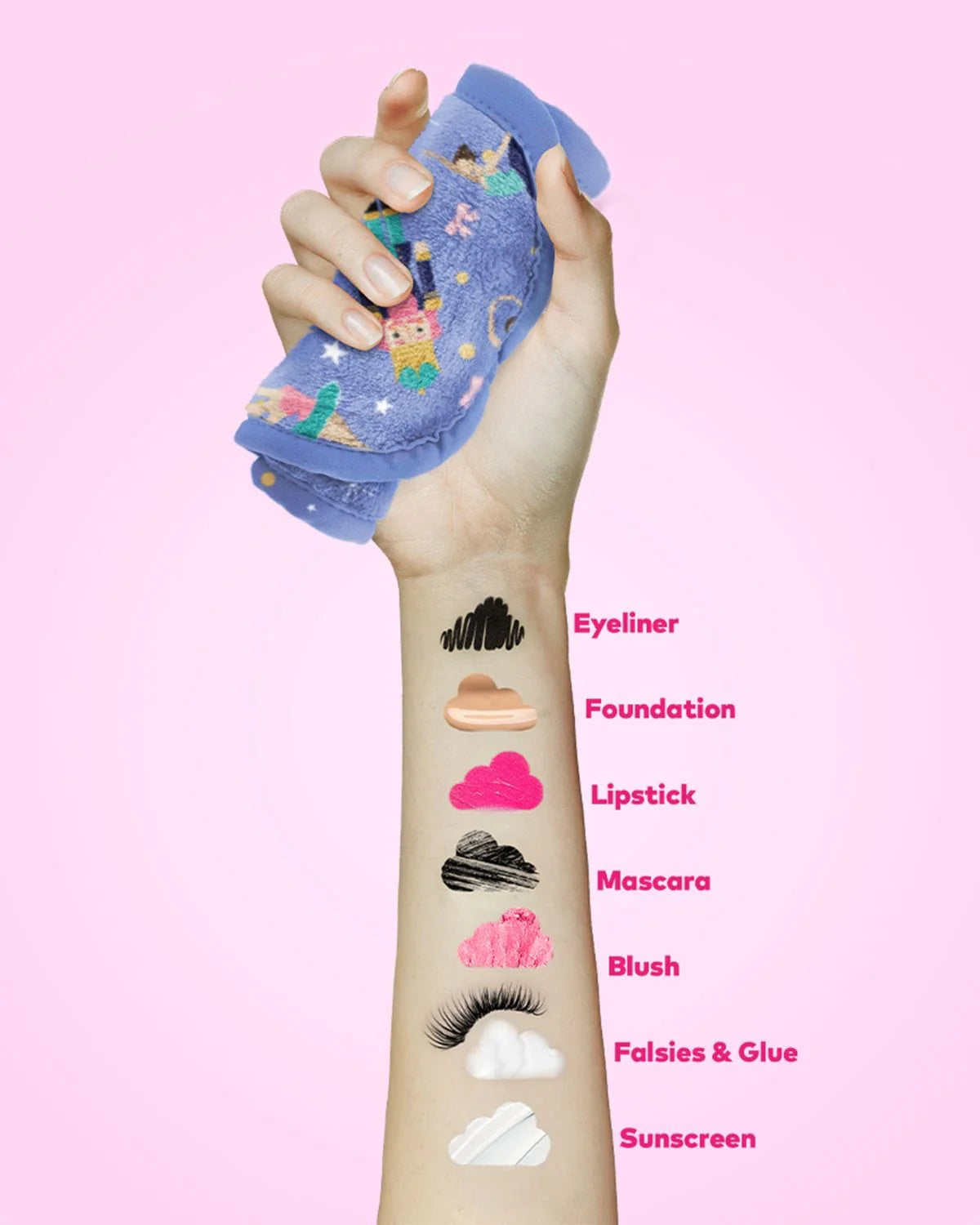 Erase all makeup with JUST WATER™ including waterproof. Our patented, water-activated, cloud-soft fibers gently & easily remove all makeup & sunscreen from pores. 2 in 1 benefit: one side erases makeup & one side exfoliates skin.