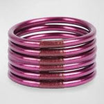BuDhaGirl Lila All Weather Bangles® (AWB®), are the epitome of luxury in BuDhaGirl's impressive lifestyle collection, The intense blues of the sky meet the earth’s warm shades to create a magnificent pallet of lavender and dusty pinks. Our remarkable bangles redefine elegance with their weightless, soundless, waterproof, and TSA-proof design. Crafted to perfection, each set comprises six bangles, symbolizing intentions for the day. Wear them anywhere, as their soundless and waterproof nature ensures seamless integration into any setting.