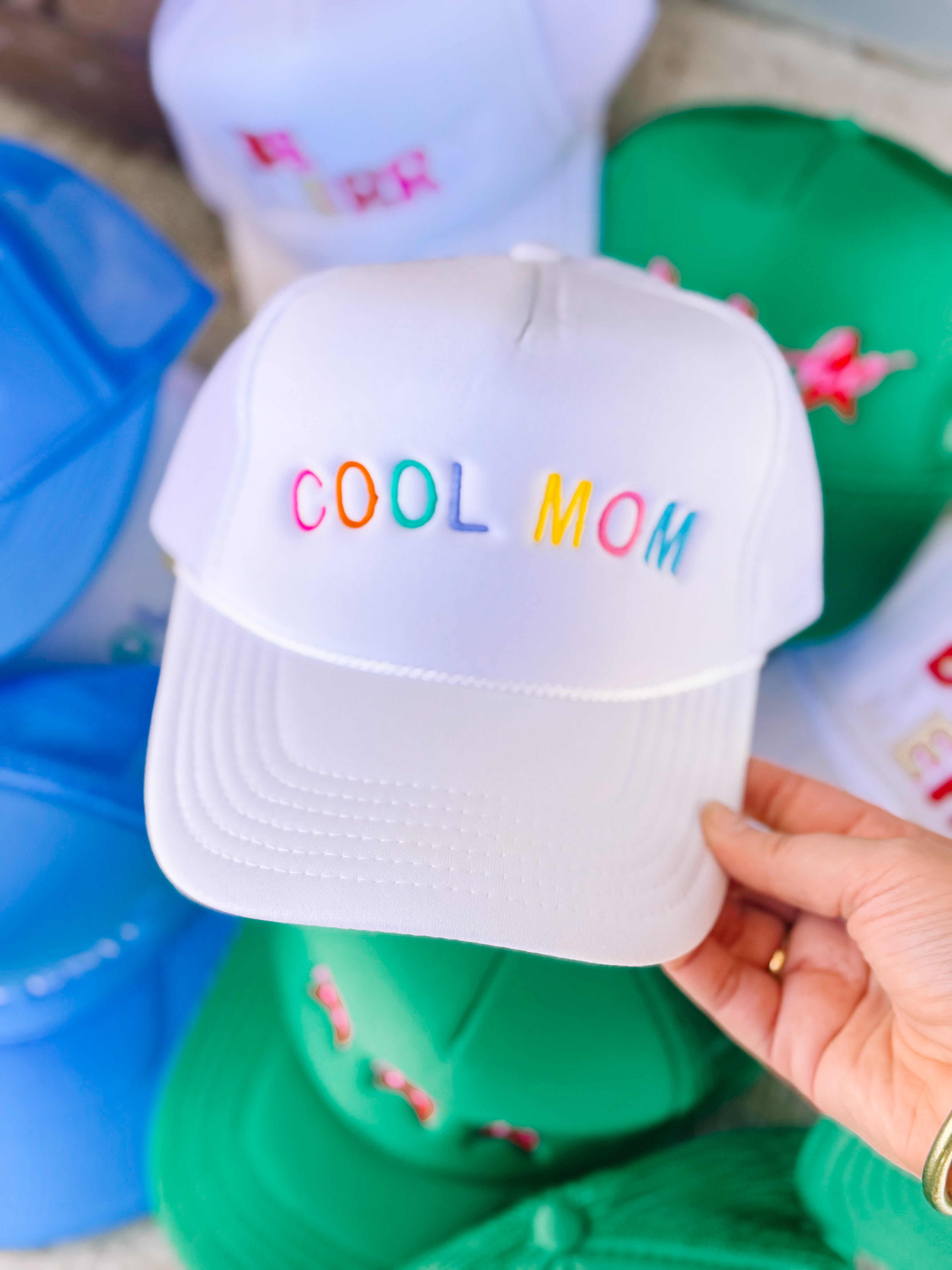 This white trucker hat features vibrant rainbow embroidery that adds a stylish pop of color. Its adjustable design ensures a comfortable fit for most head sizes, making it a versatile accessory. Perfect as a thoughtful gift, this hat combines casual flair with practical wearability for any cool mom.