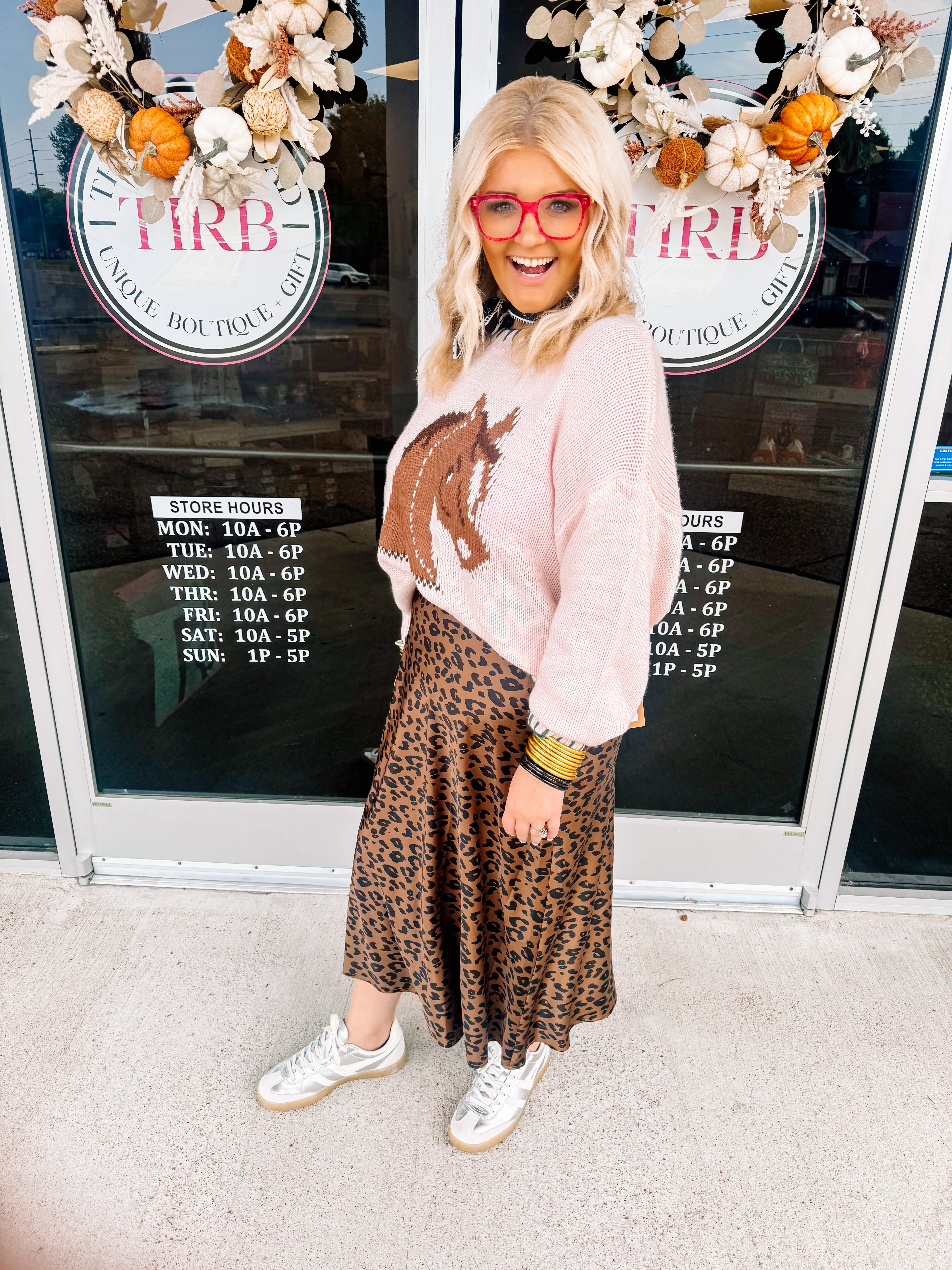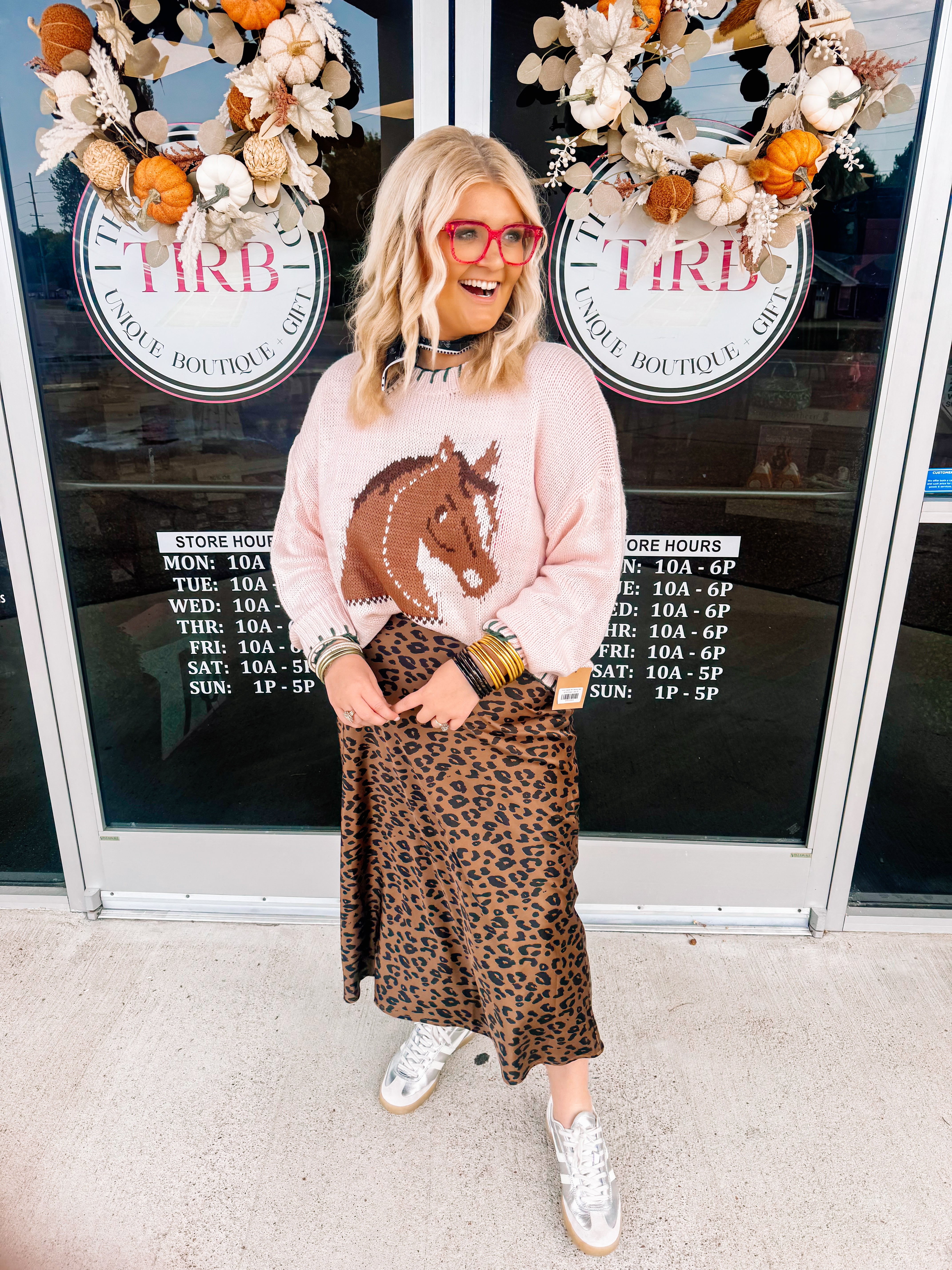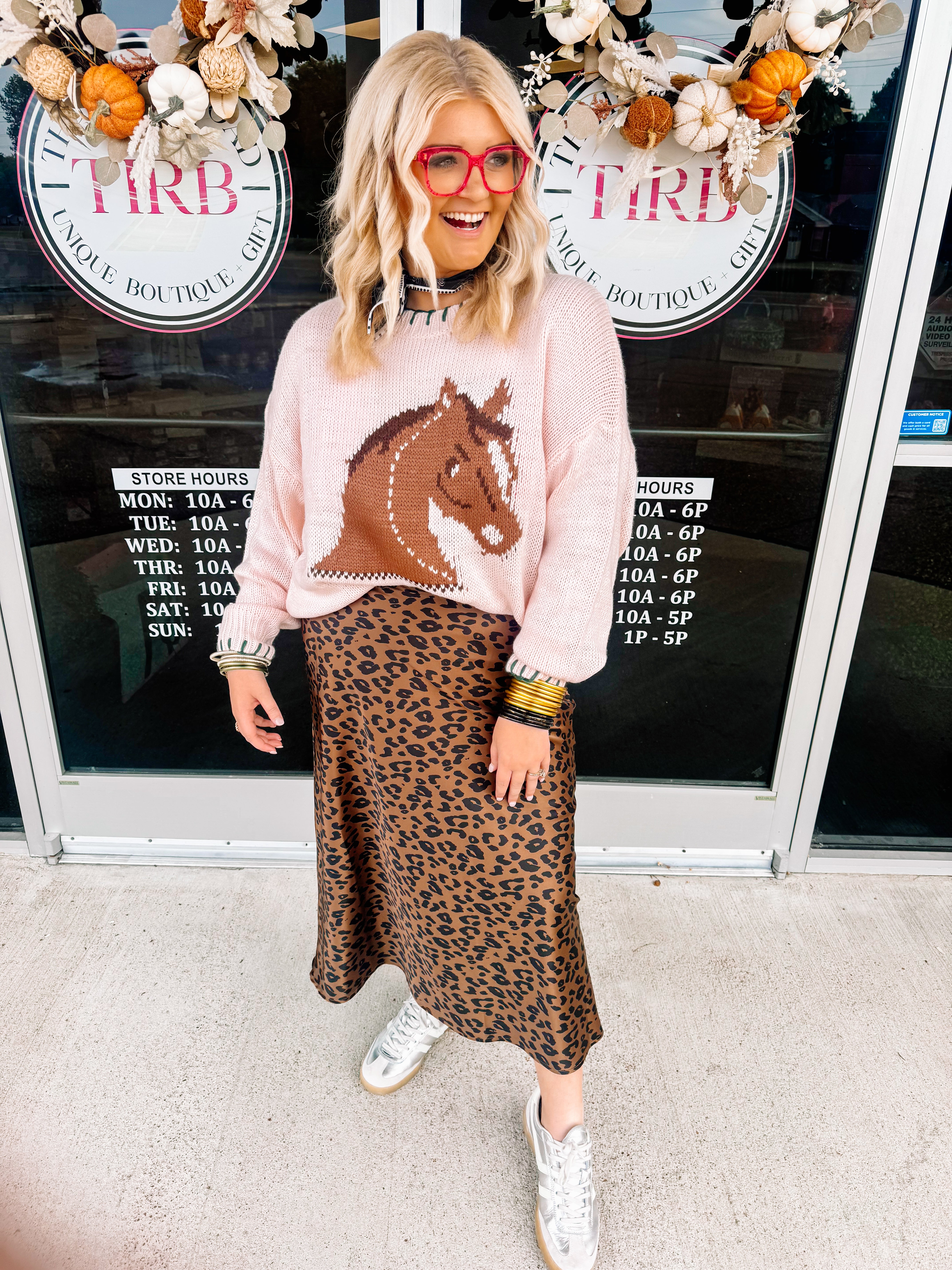 The Bailey Rose See You Cowboys Sweater offers a stylish blend of comfort and classic western flair. This cozy sweater features a distinctive horse motif on the front and the phrase “See you cowboys!” subtly embroidered near the back collar. With tan/off-white fabric complemented by green stitching along the neck, cuffs, and hem, it provides a refined yet rugged look perfect for casual wear or layered warmth. Its thoughtful design details ensure durability and timeless appeal for those who appreciate quality western-inspired apparel.
