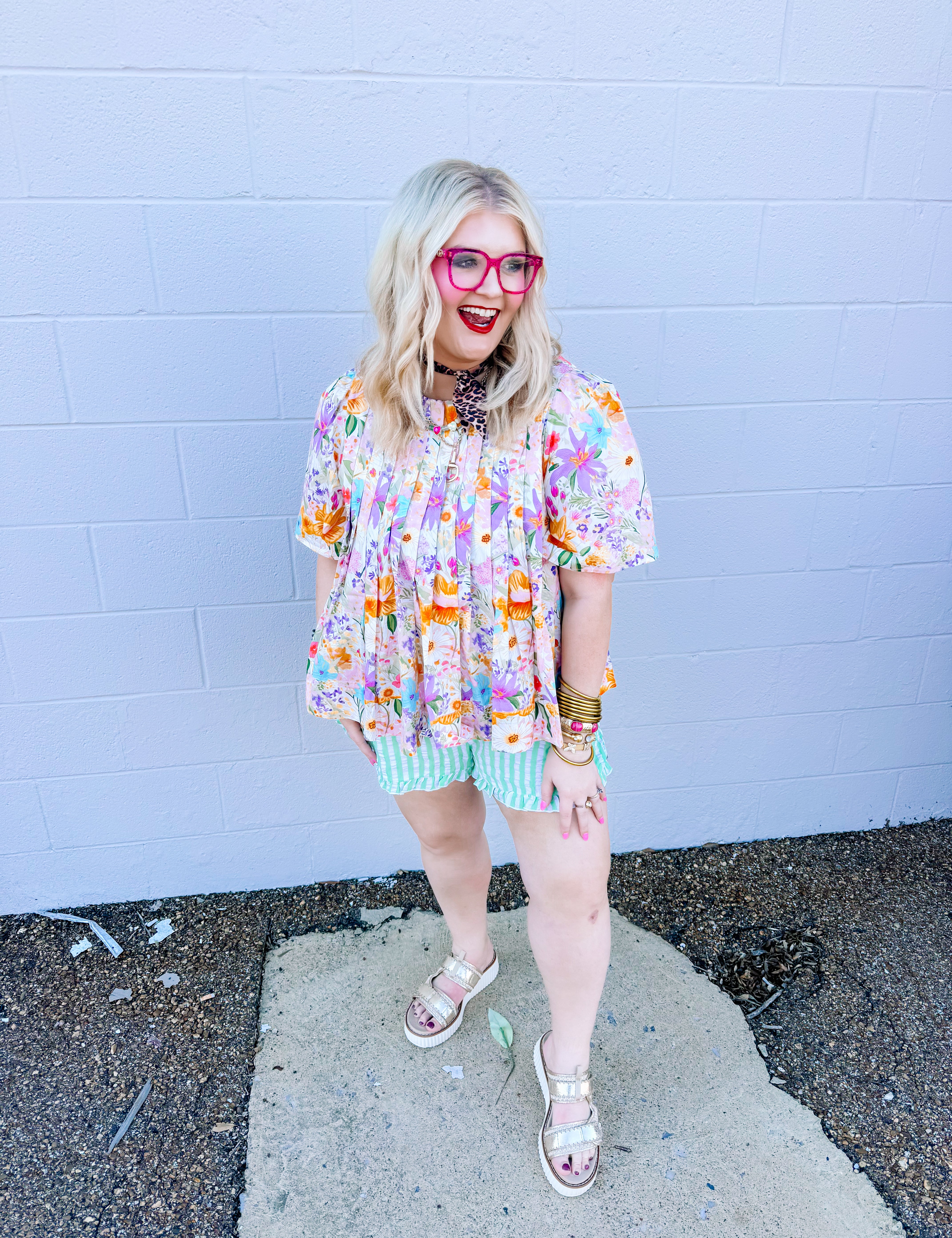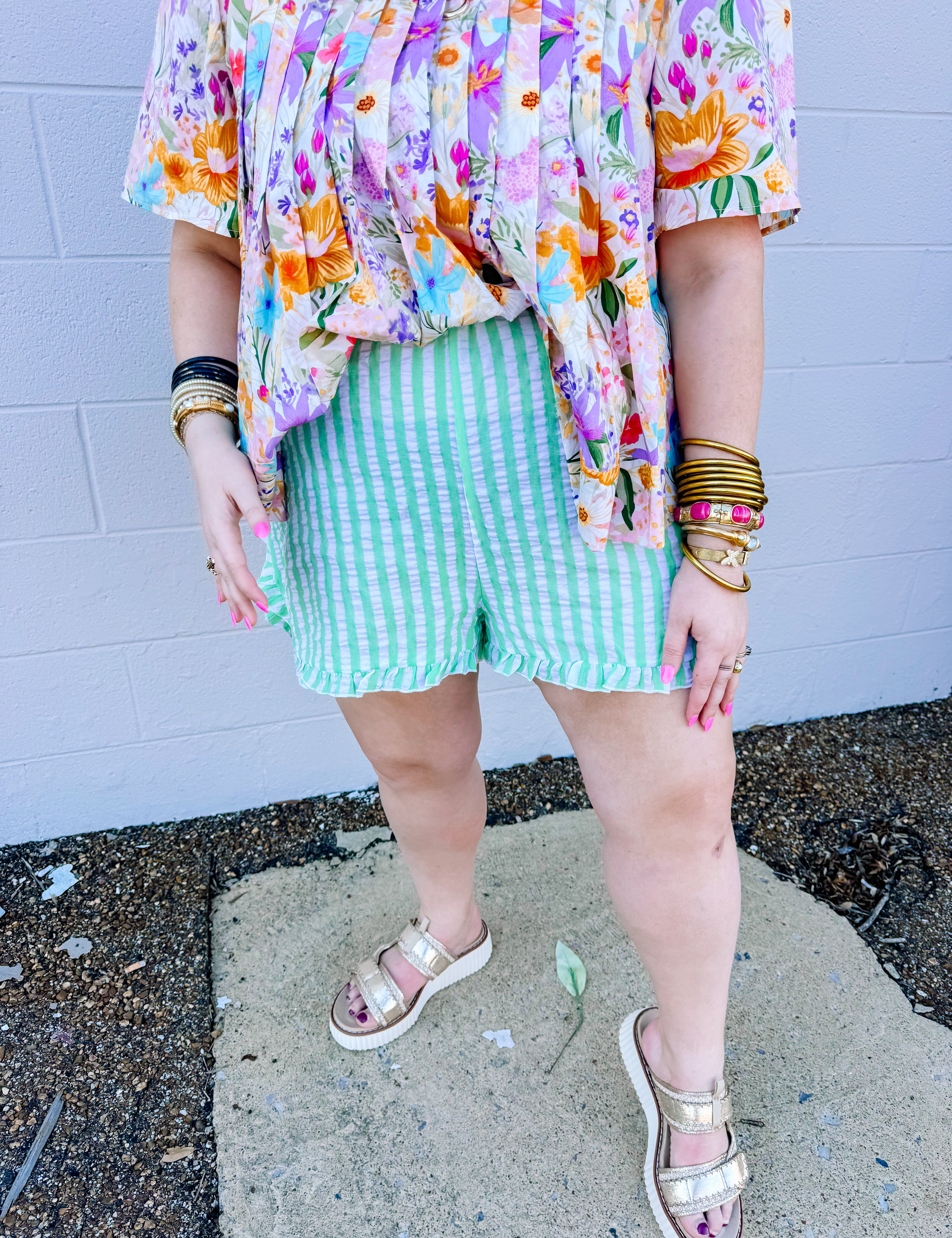 Oddi Lime Striped Ruffle Shorts