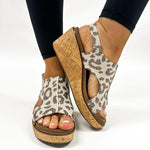 Experience the ultimate upgrade to our best-selling Carley style with Corky's Tan Sparkle Leopard Carley Sandals. These wedges add just the right amount of sparkle to your look while bringing you the ultimate comfort. Don't wait, and add them to your cart while they're still available!