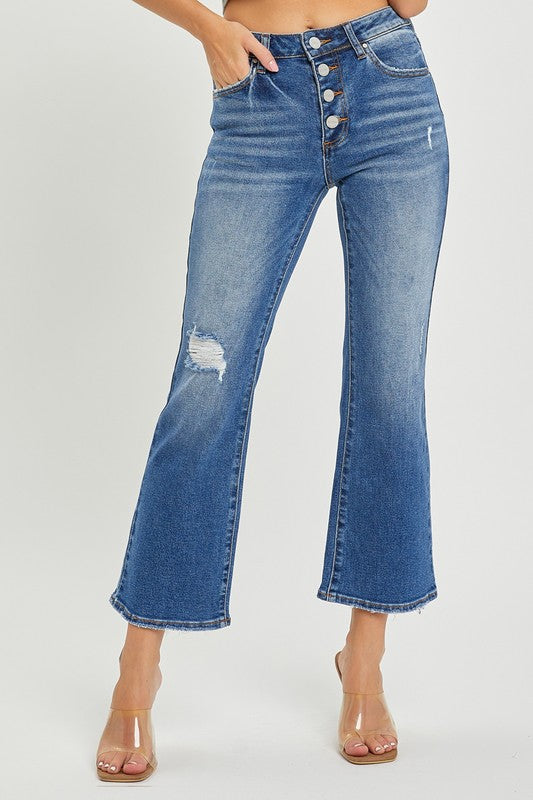 These plus size jeans are perfect! Our Fly jeans are a plus mid rise button down cropped flare.