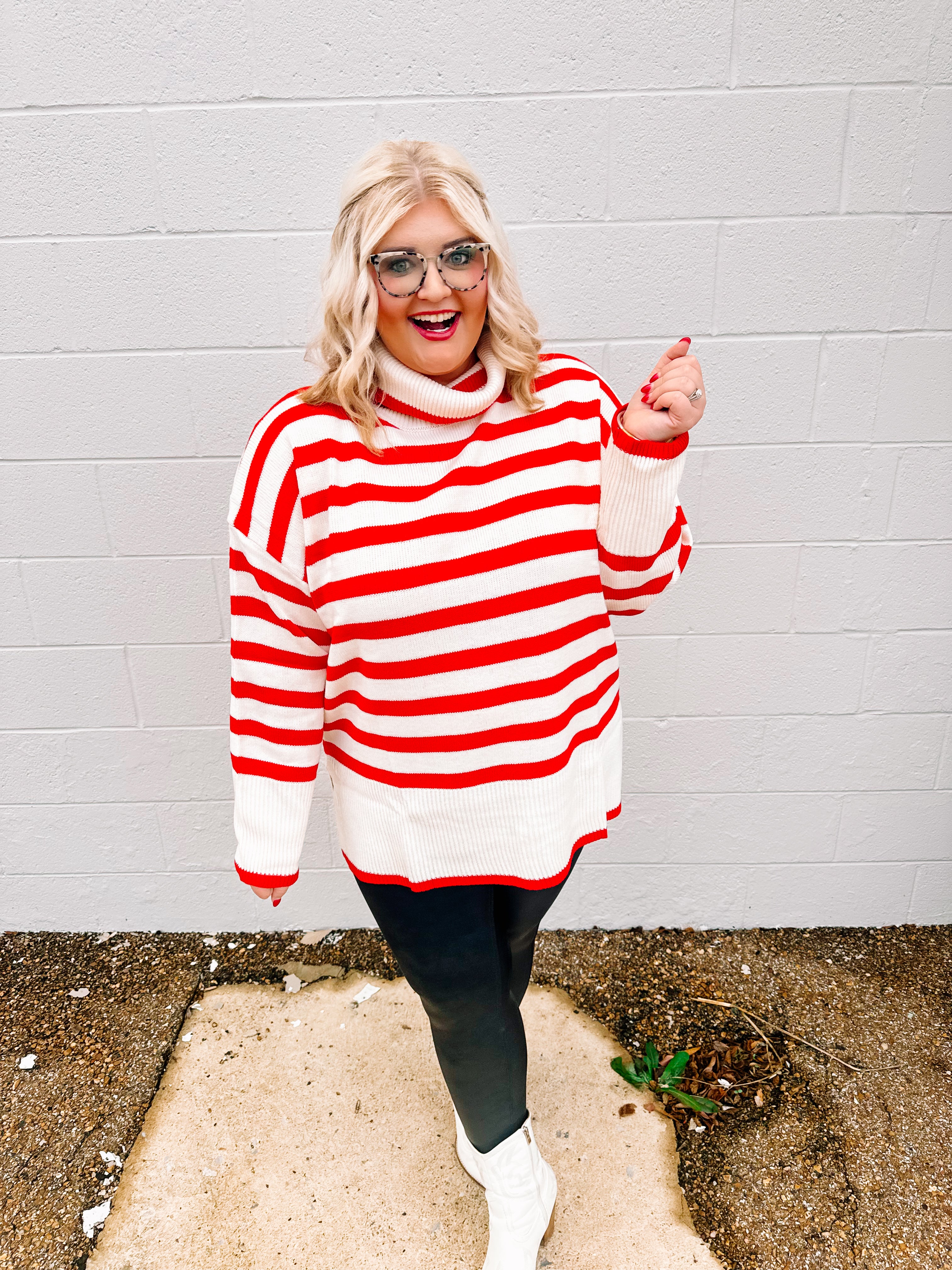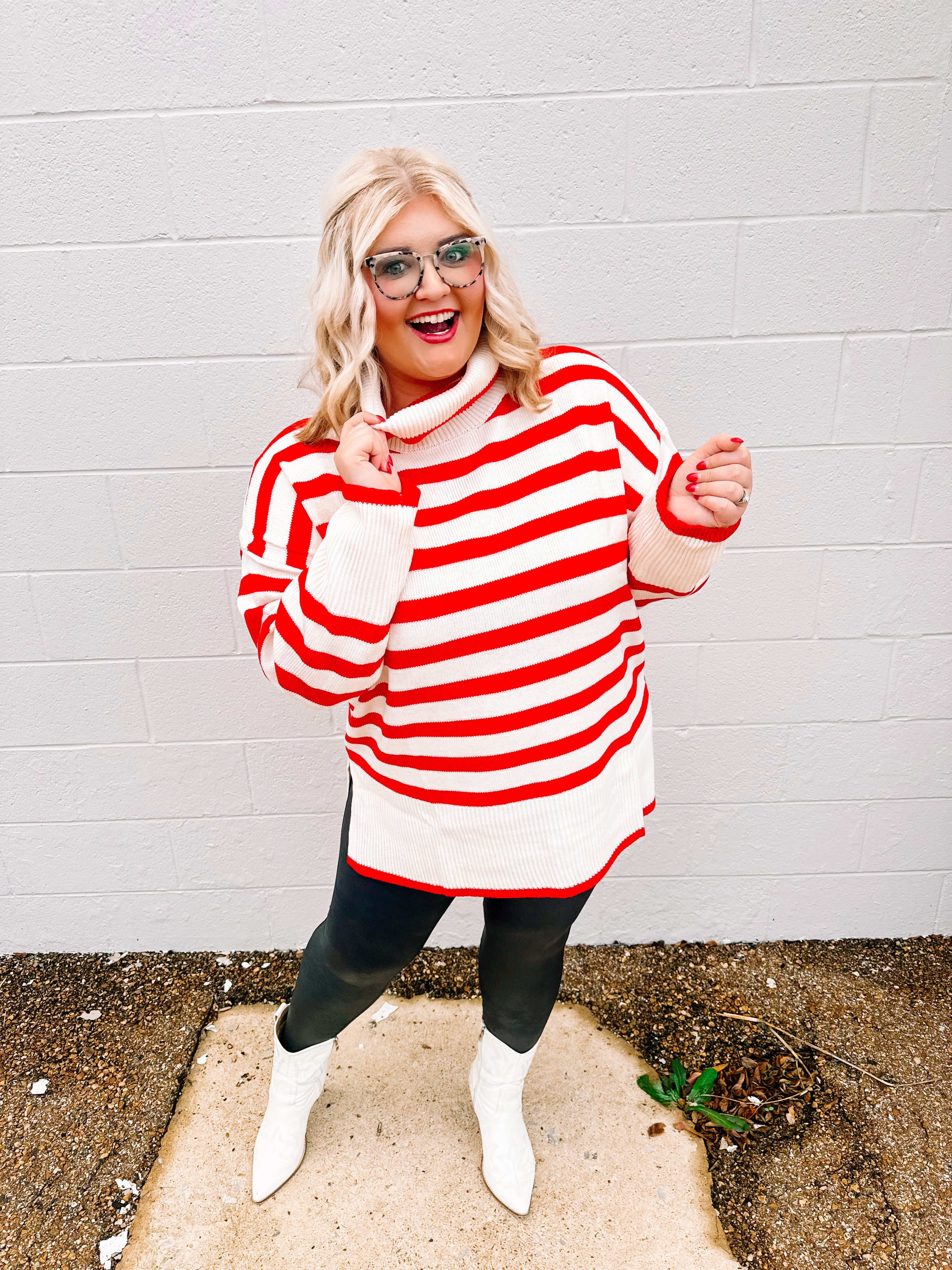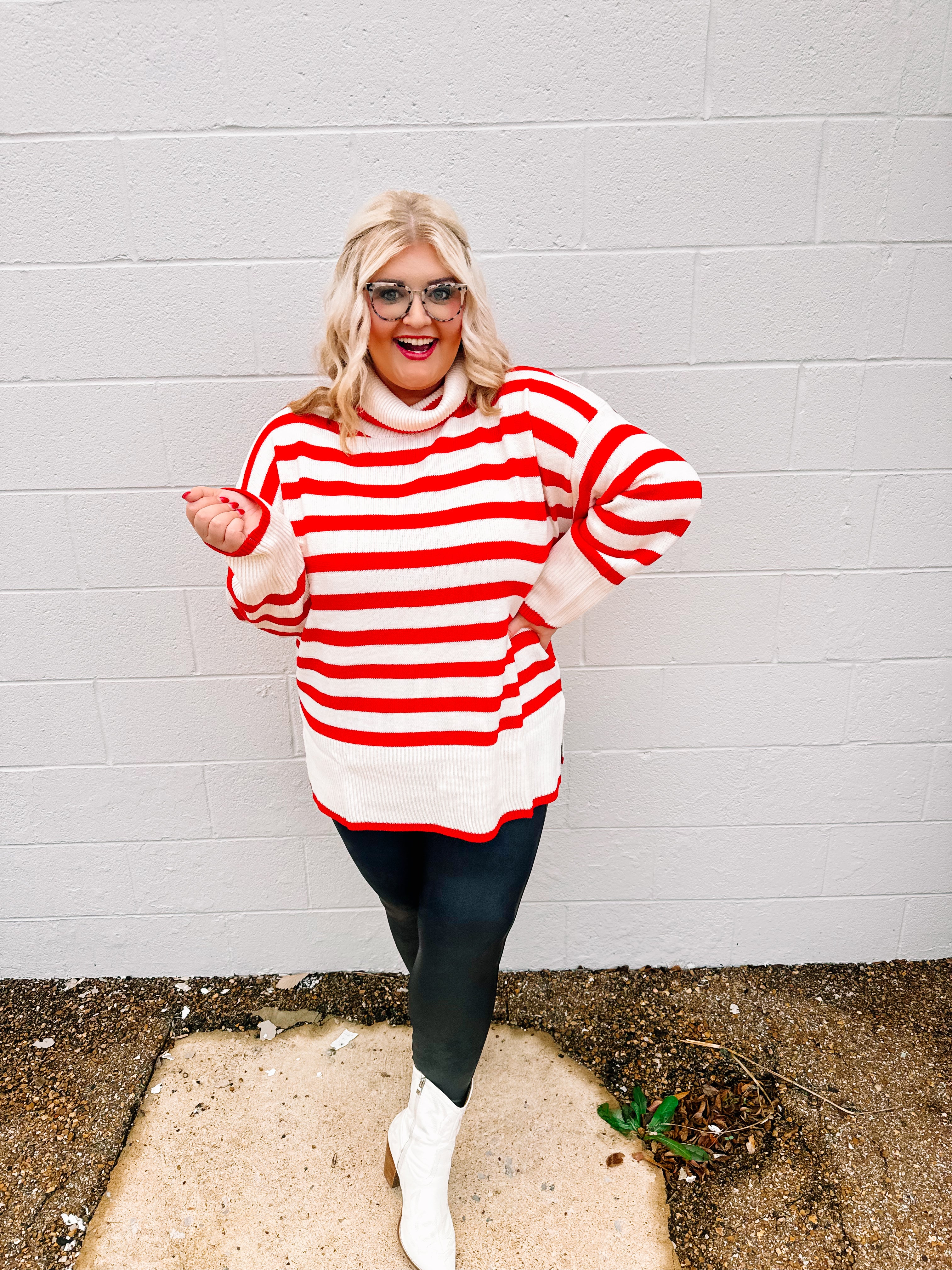A Classic Christmas is something we love but a classic Christmas look is something we hope for. Trust us when we say to let us plan your outfit. Our Classic Christmas Sweaters are perfect with so many things and it is going to be a great asset to add to your closet. This top comes in red and black and features: a RELAXED FIT STRIPED KNITTED SWEATER FEATURING TURTLENECK, DROP SHOULDER RIBBED CUFF LONG SLEEVES, AND RIBBED HEMLINE WITH SIDE SLITS.