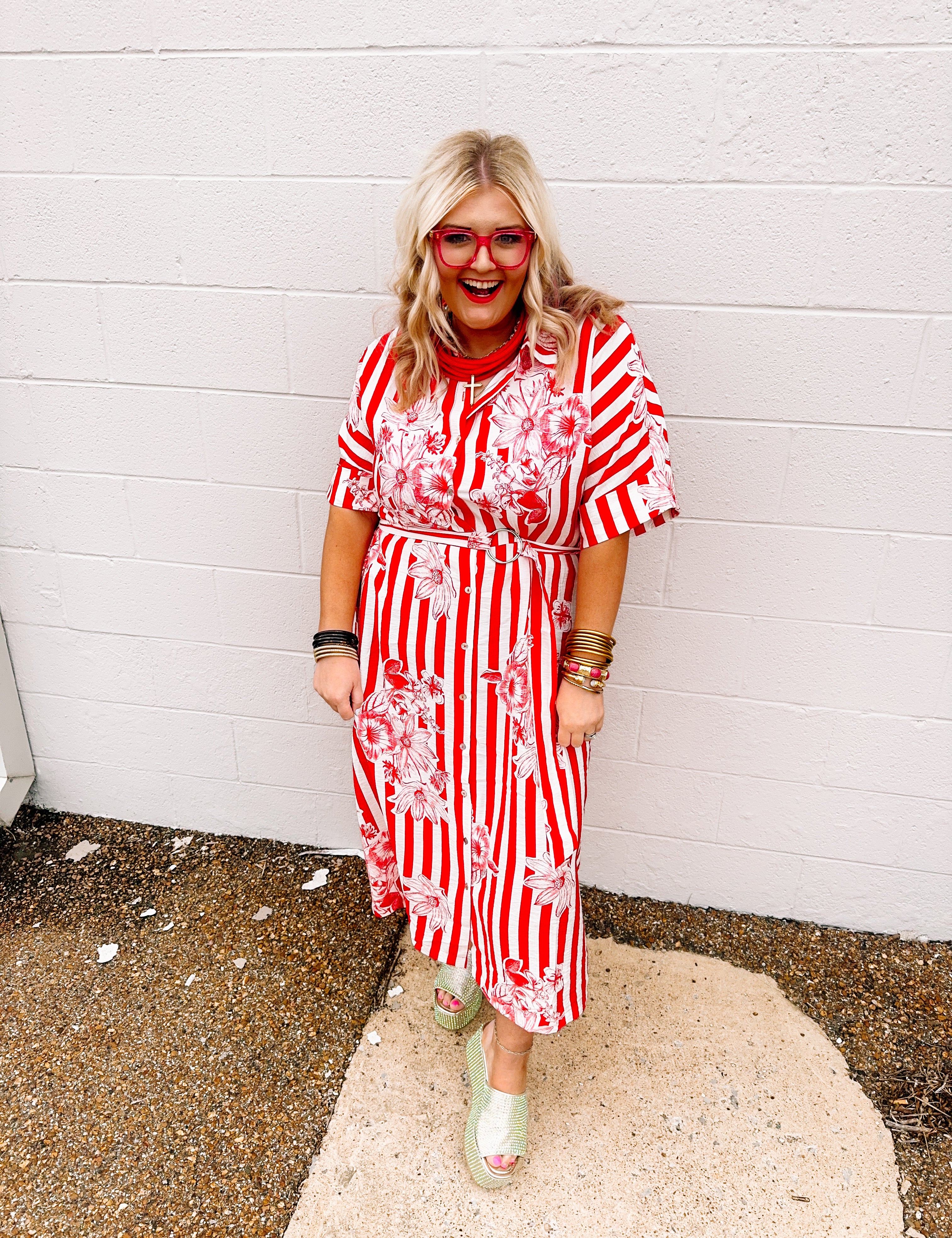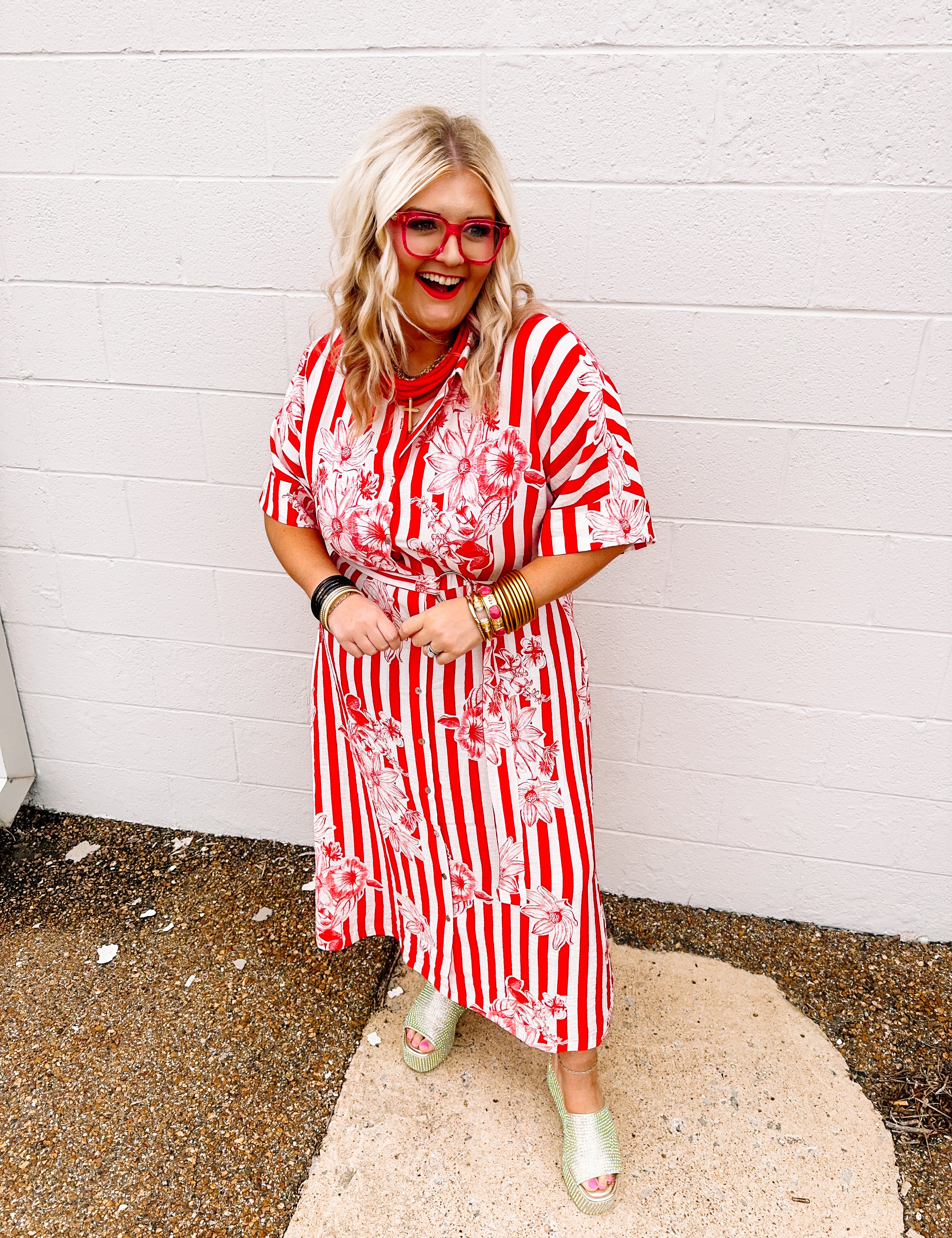 Oddi: Red Stripes Midi Dress (+)