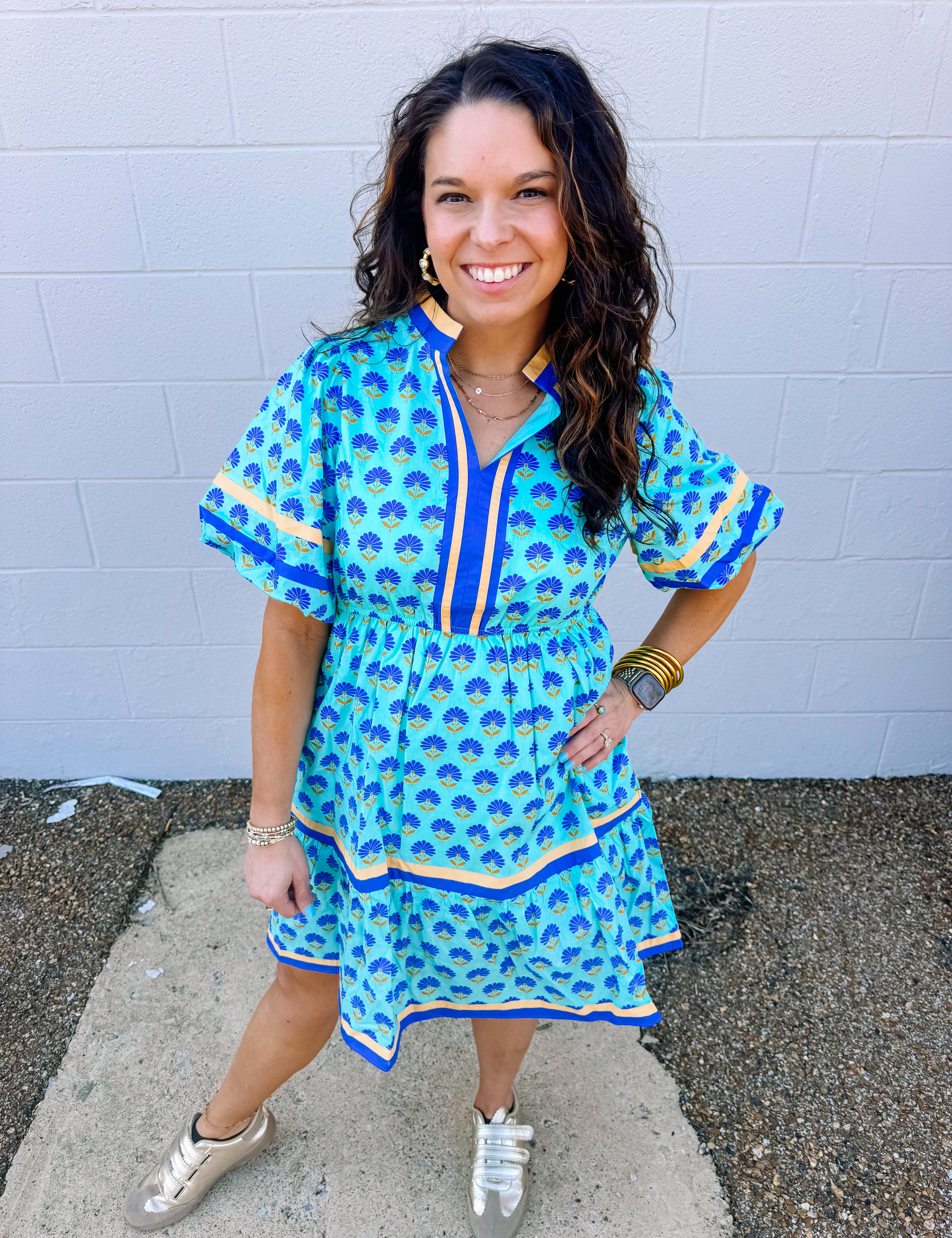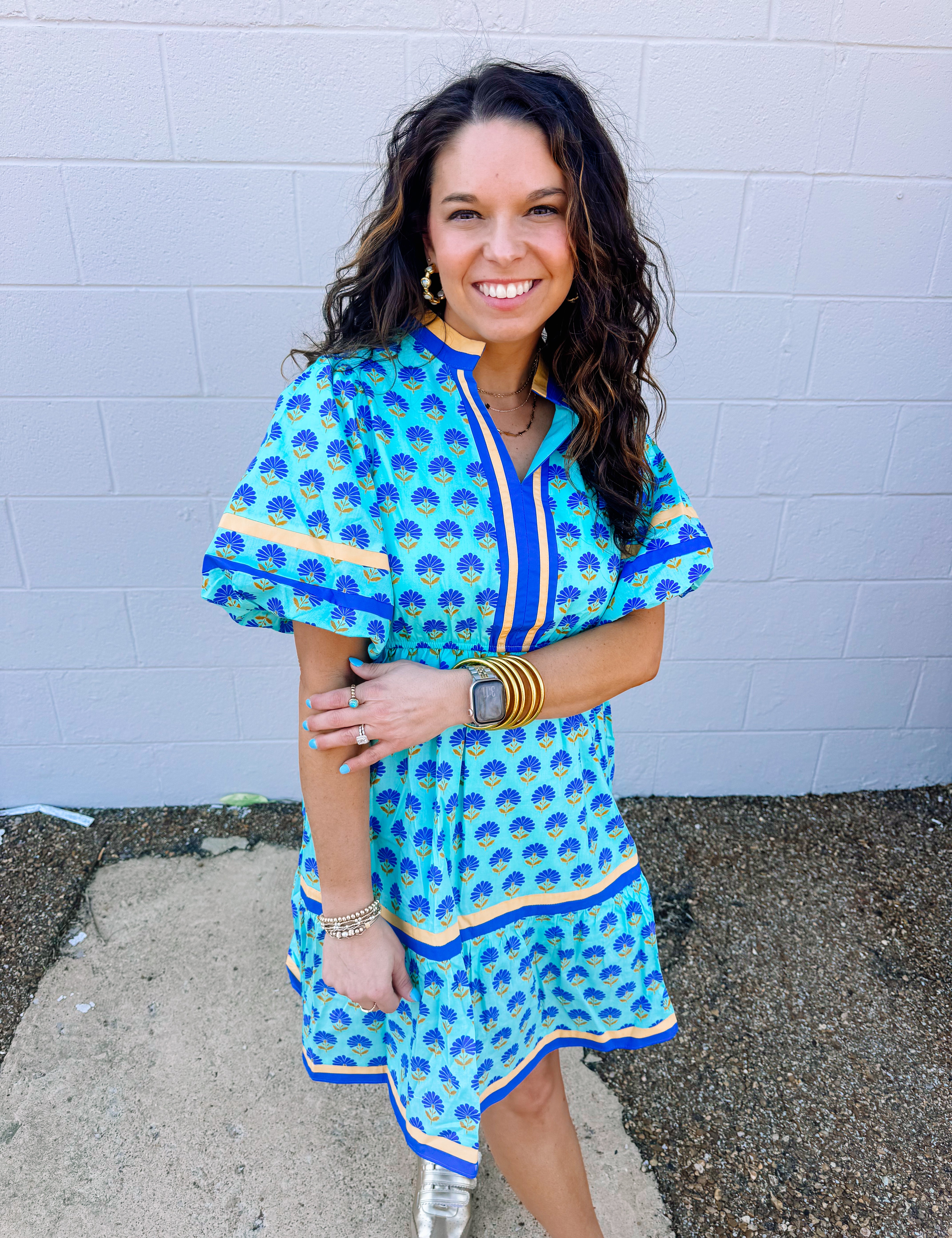 Jodifl Spring Boho Aqua Floral Dress