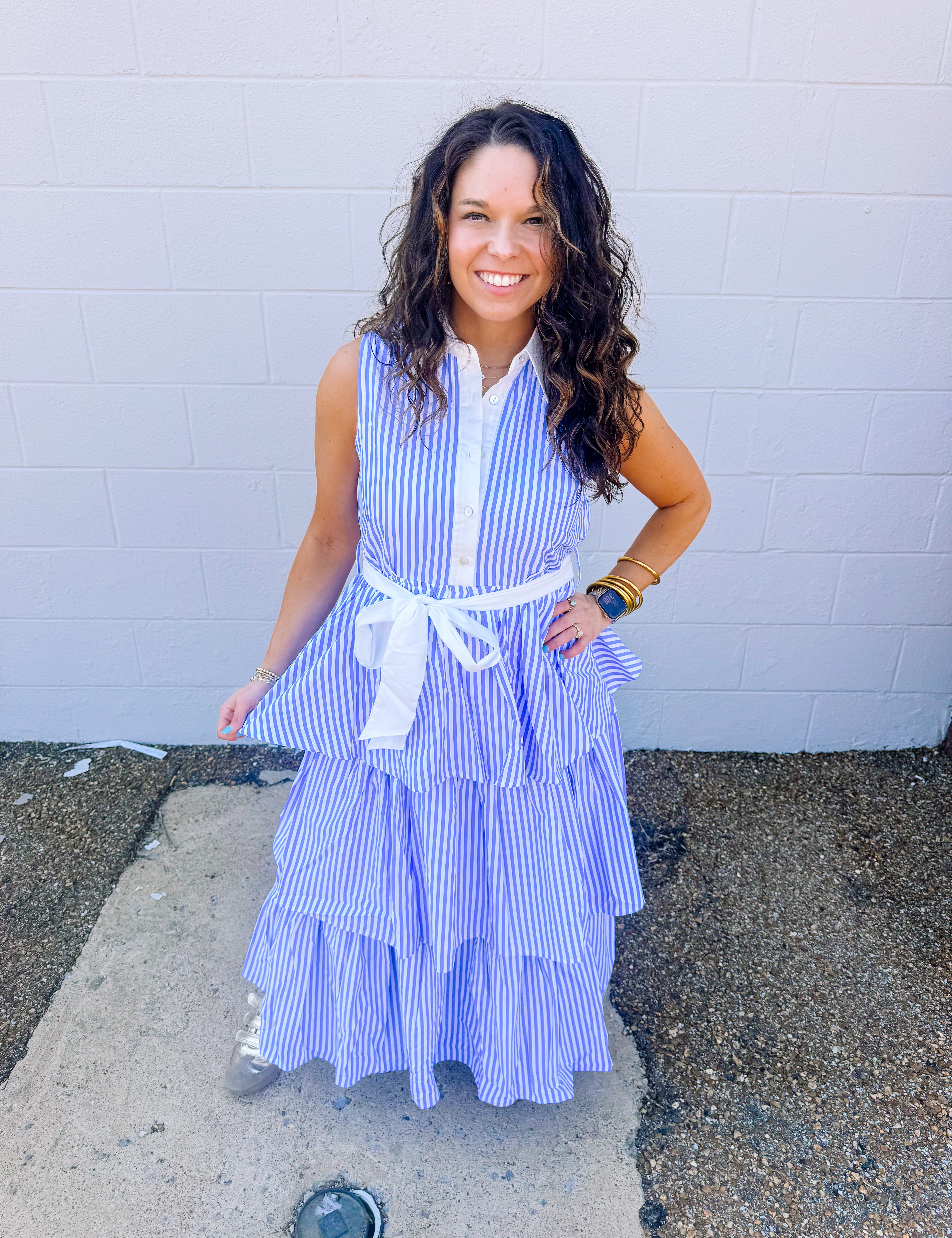 Entro Blue Collared Stripes Dress