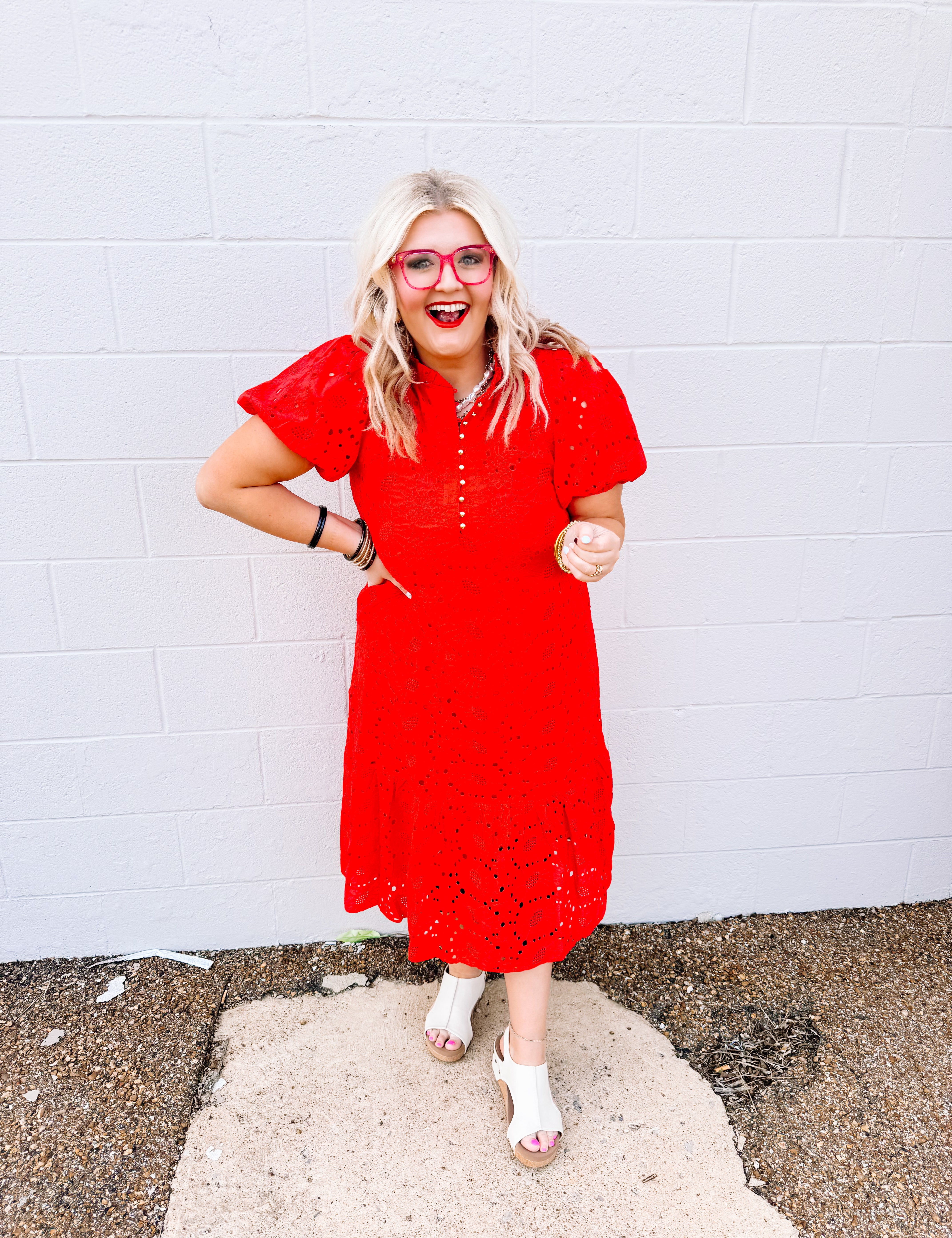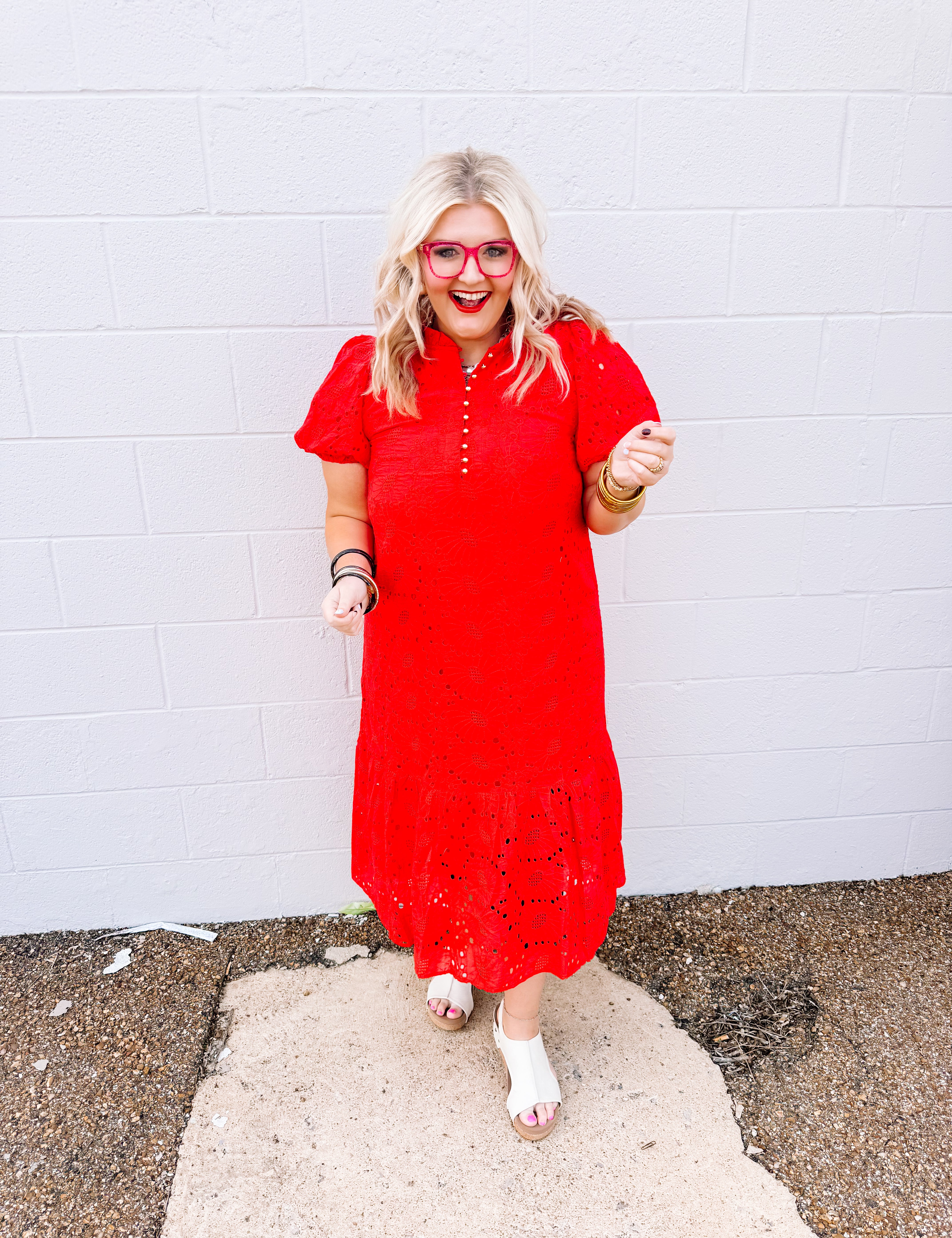 Jodifl Red Dumplins Lace Midi Dress