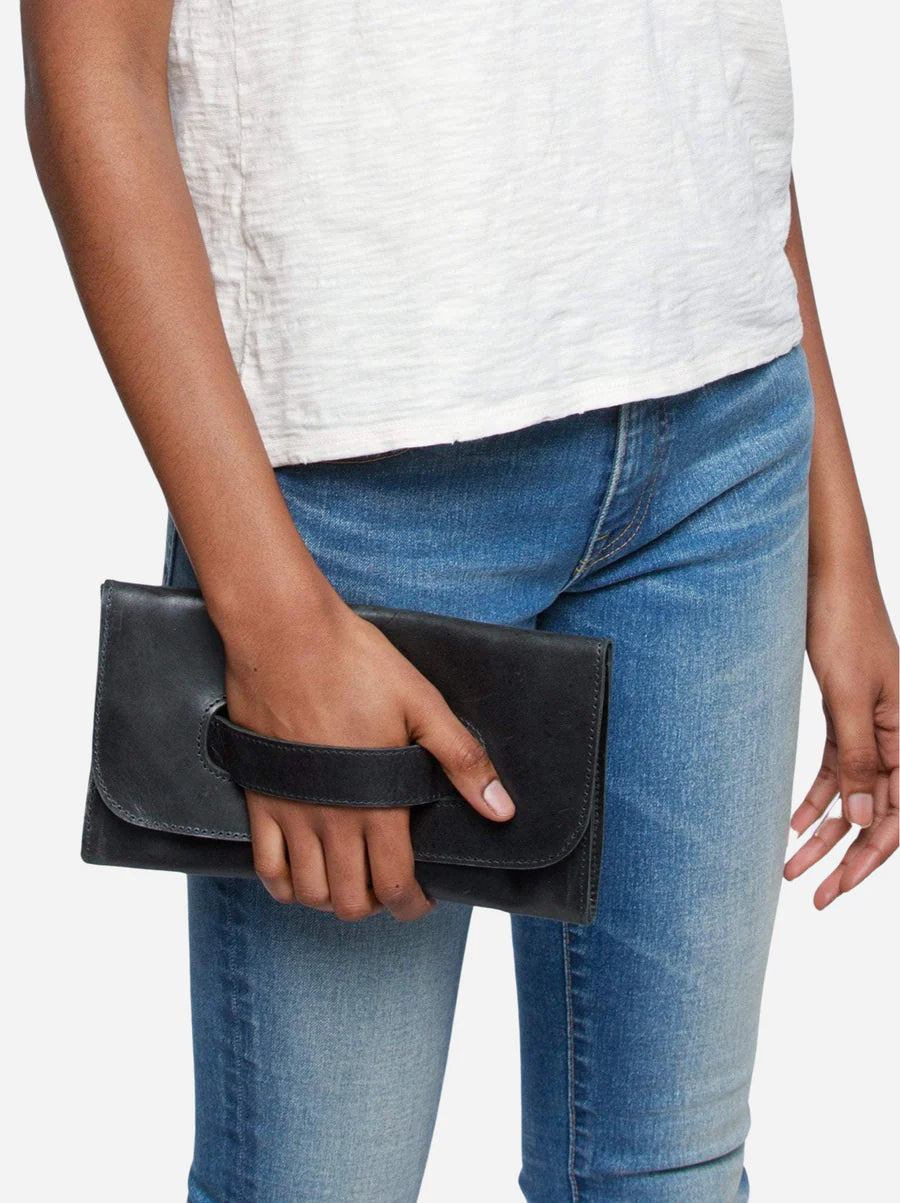 The Mare Handle Clutch takes any look to the next level. Simple yet sophisticated, this clutch is our favorite sidekick for an evening out.