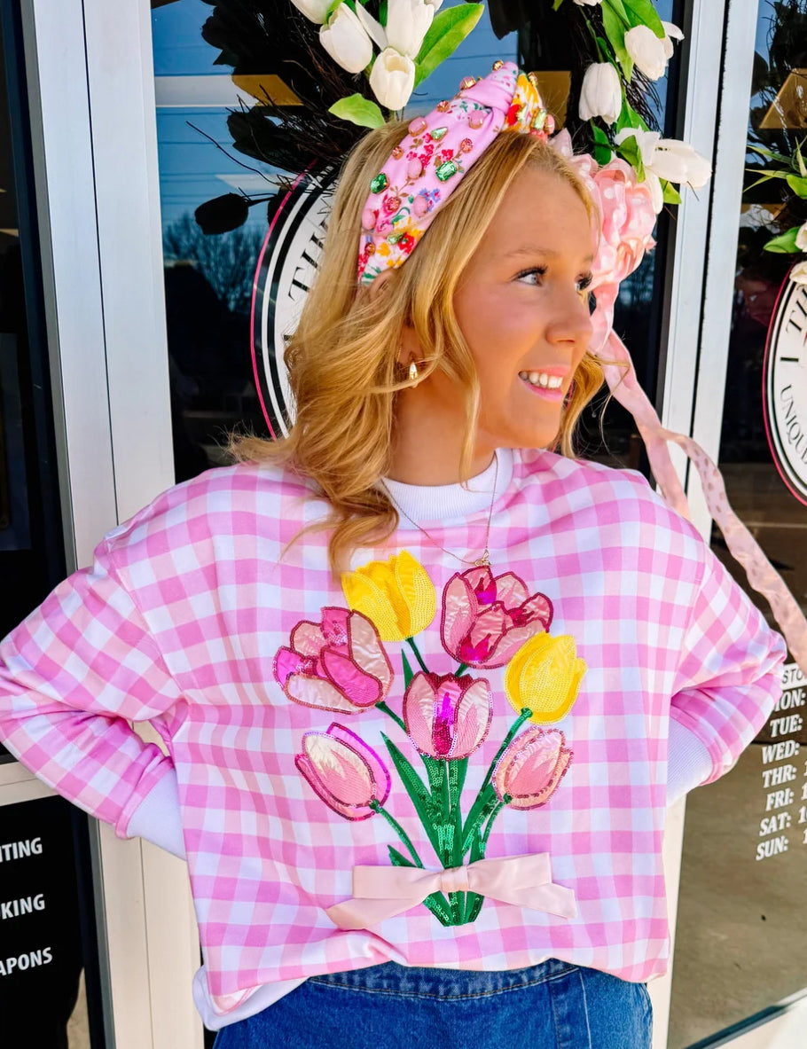 Brianna Cannon Pink Gingham Bouquet Sweatshirt