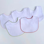 Our Picot Trim Bibs in Pink are crafted from soft, breathable cotton, providing gentle comfort for your baby. Featuring an easy snap closure, these one-size bibs ensure convenience and a secure fit. Their smooth surface makes them ideal for embroidery or appliqué customization. Complement your set with matching gowns, footies, burps, and hats, perfect for thoughtful gifting.