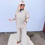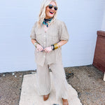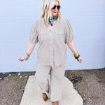 The Oddi Brown Striped Top features a refined button-down design with charming puff sleeves that add subtle volume to your silhouette. Crafted with a classic striped pattern, this top includes practical front pockets for added functionality without compromising style. Its structured fit and detailed accents make it a versatile piece, ideal for elevating both casual and professional wardrobes with ease.