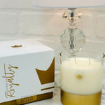 Elegantly gilded with the Bourbon Royalty crown, this candle exudes opulence. Being double wicked, it burns for 45-55 hours, casting a warm, captivating glow. Housed in a custom box, it's a perfect gift or a luxurious addition to your space. Elevate your ambiance with this regal masterpiece.