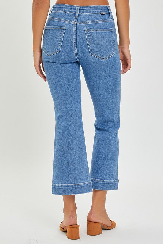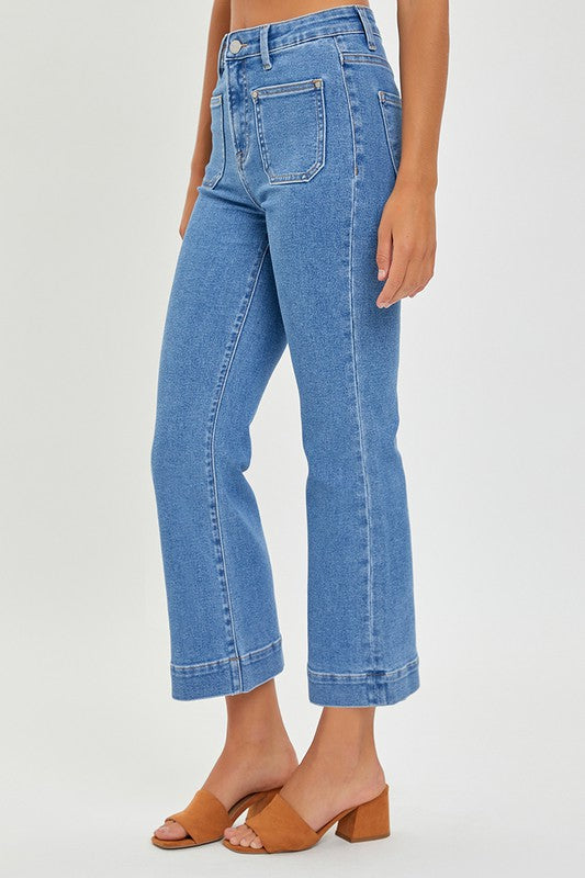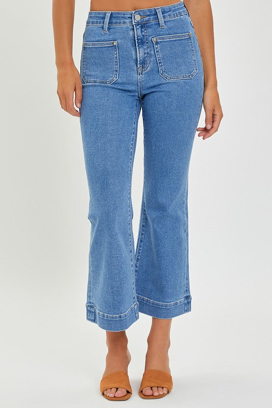 Our Ava cropped jeans are a fan favorite and our girl Ava loves them. They are a high rise front patch pocket ankle cropped jean.