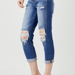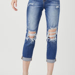 New Risen has arrived just in time for the Holiday season. The Becca jean is a high rise boyfriend jean with distressing throughout.