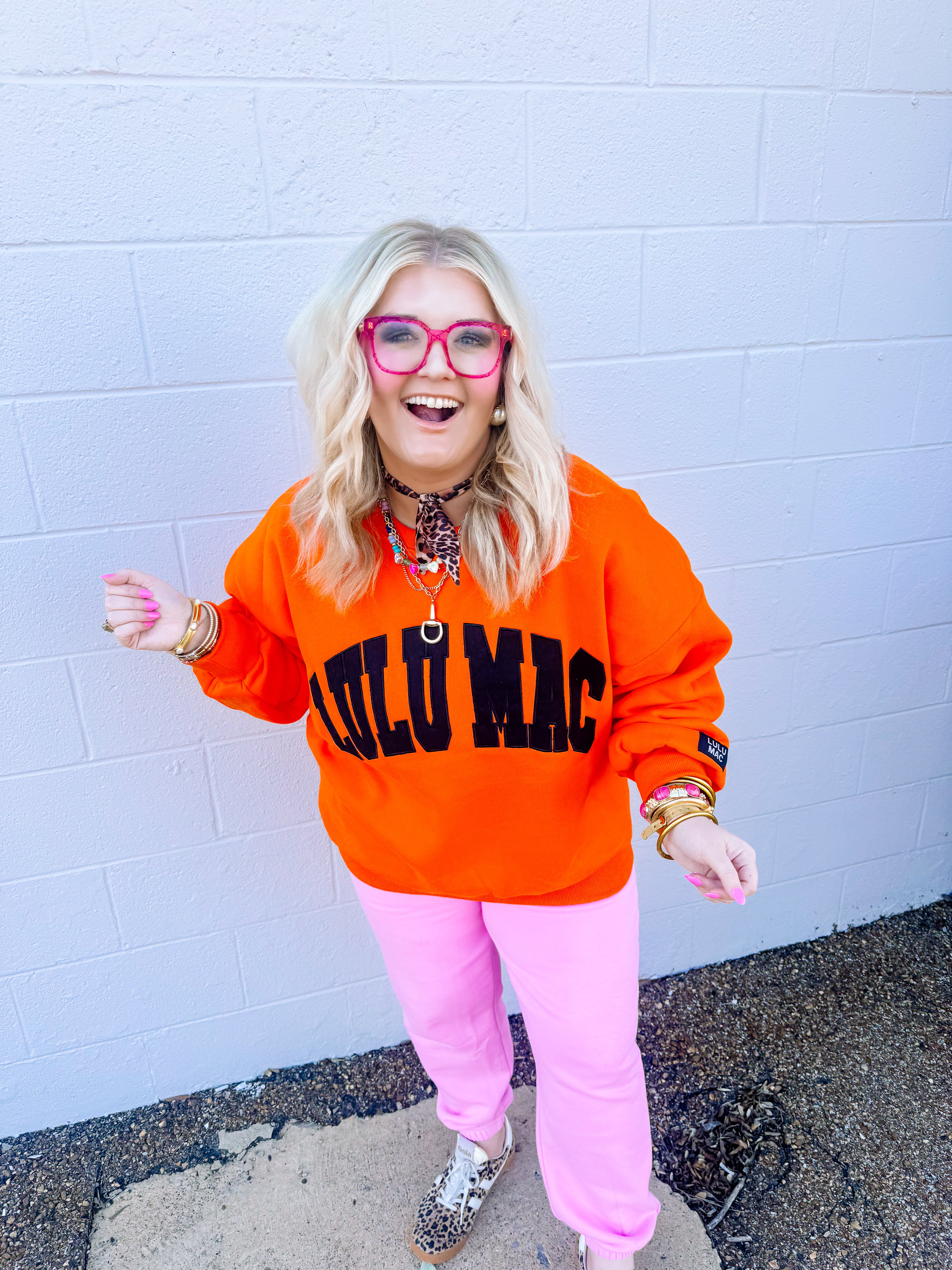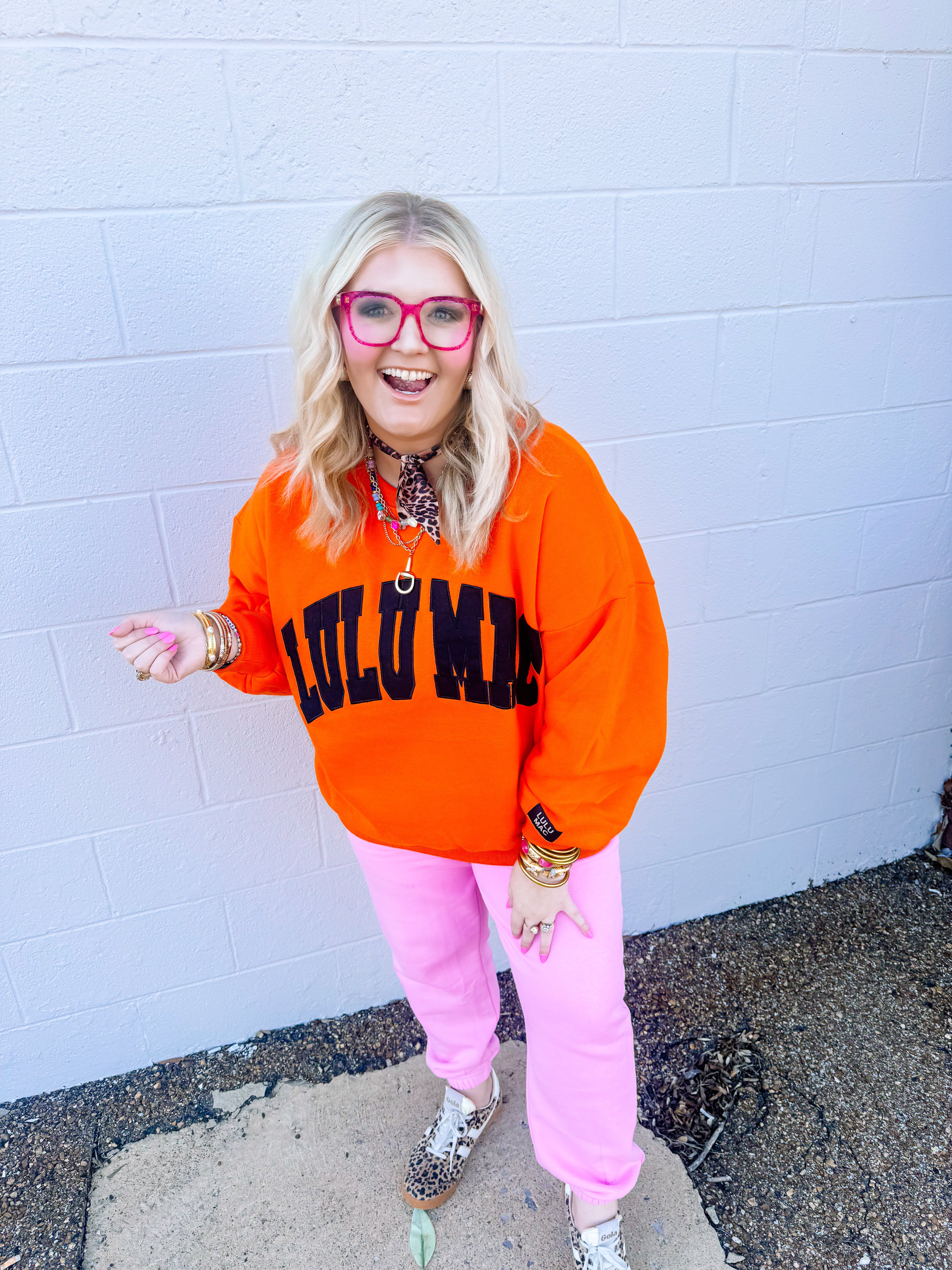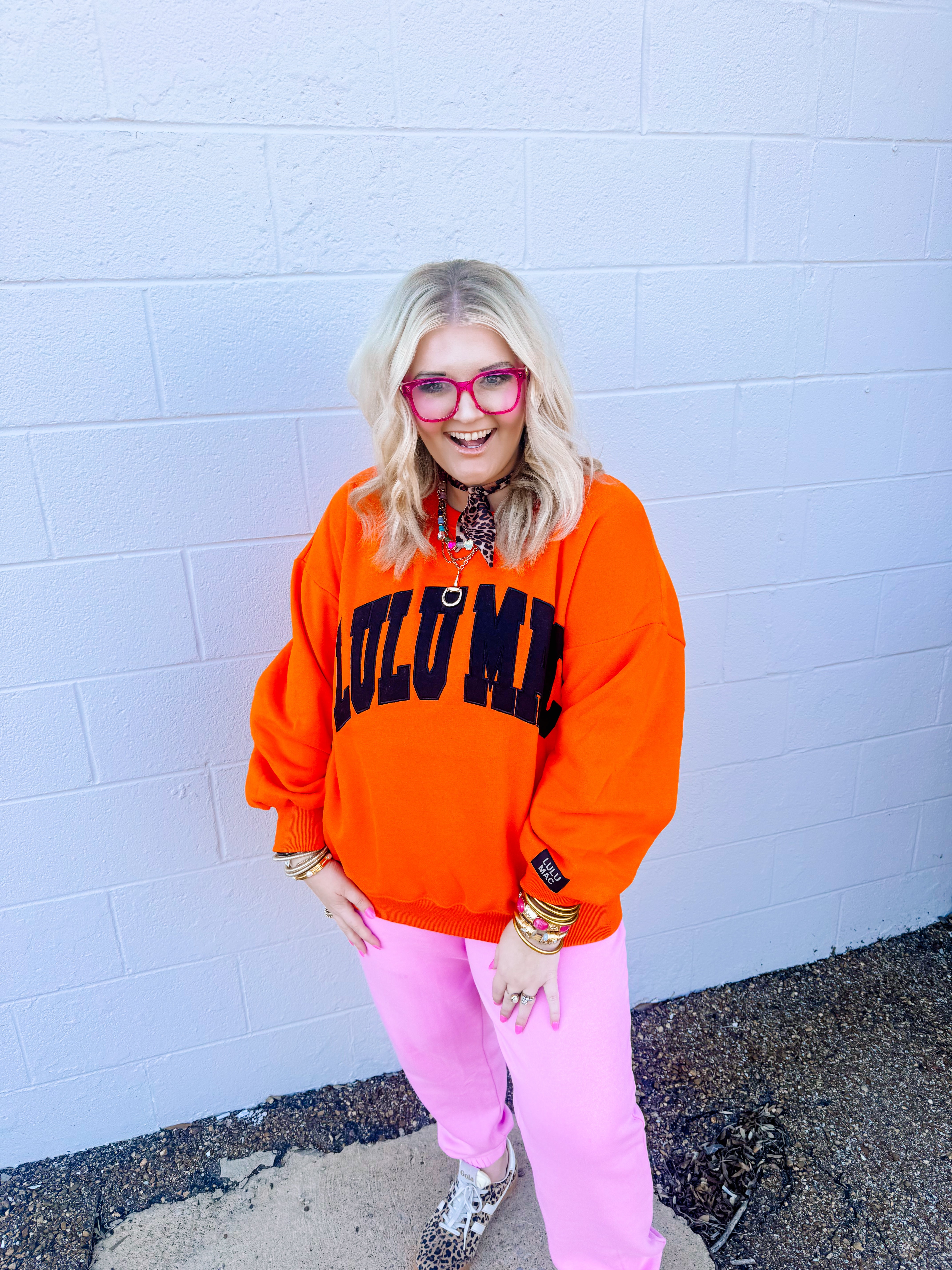 LULU MAC: Orange and Black Logo Crew