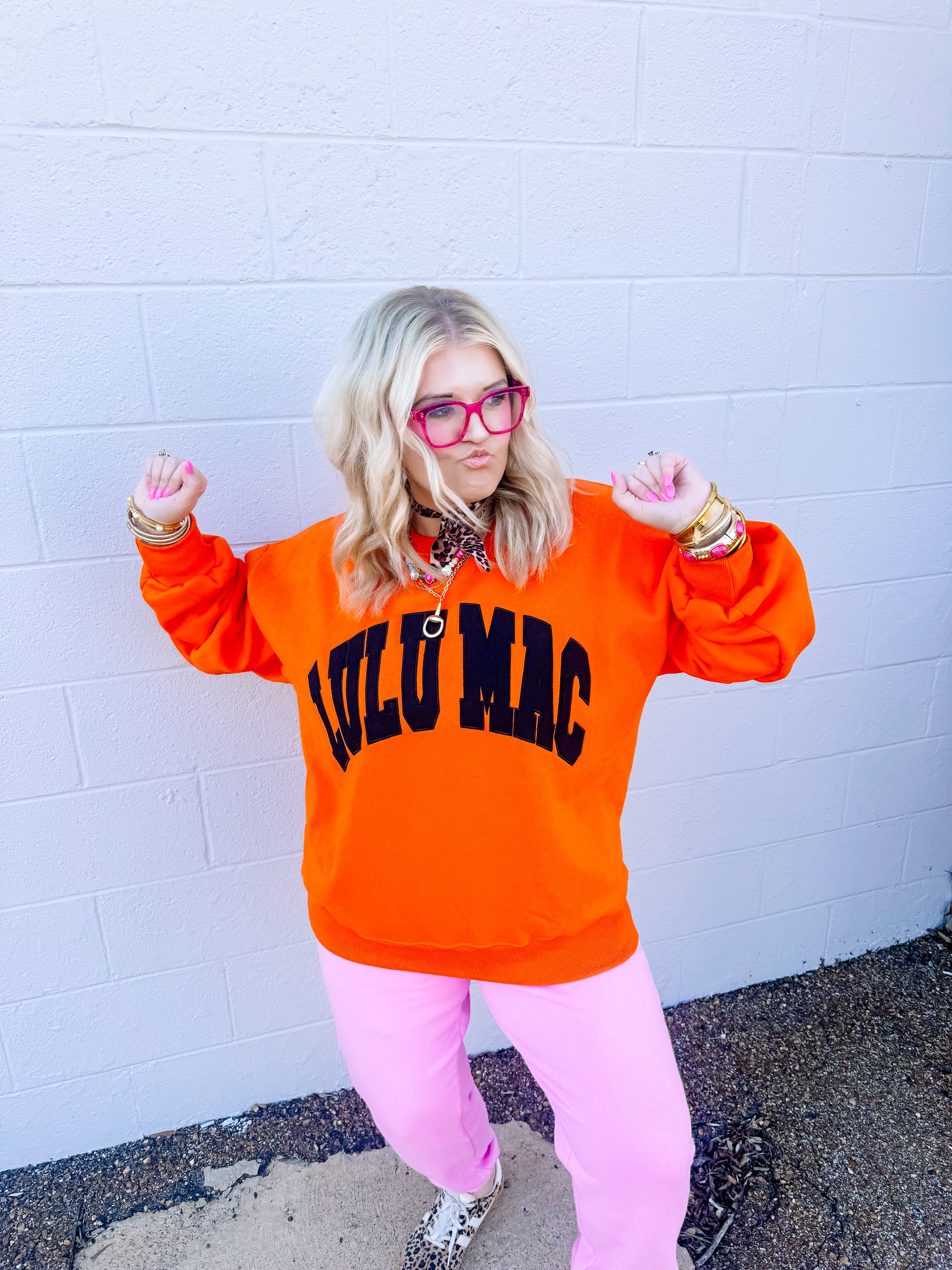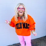Bring a pop of playful color to cozy days with this Orange/Black embroidered sweatshirt! Crafted from a soft 50/50 cotton-poly blend, it’s perfect for keeping warm while adding a fun, stylish edge to your casual look.