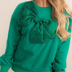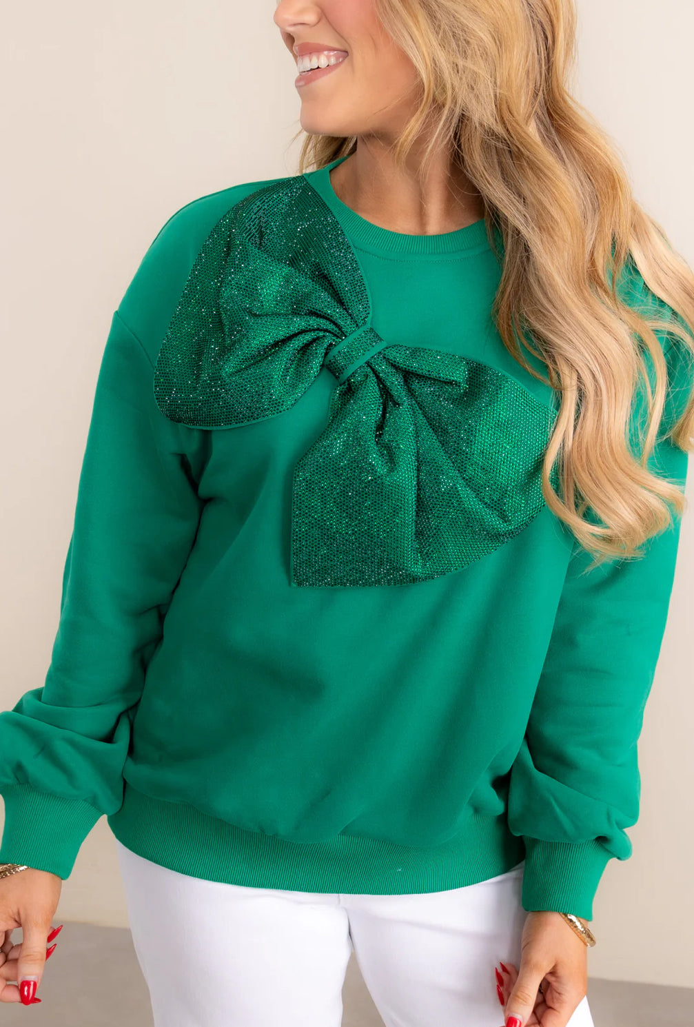 Indulge in luxury and elevate your wardrobe with this Sweatshirt. Adorned with a dazzling rhinestone bow, this sweatshirt features a rounded neckline and long sleeves for a sophisticated look.