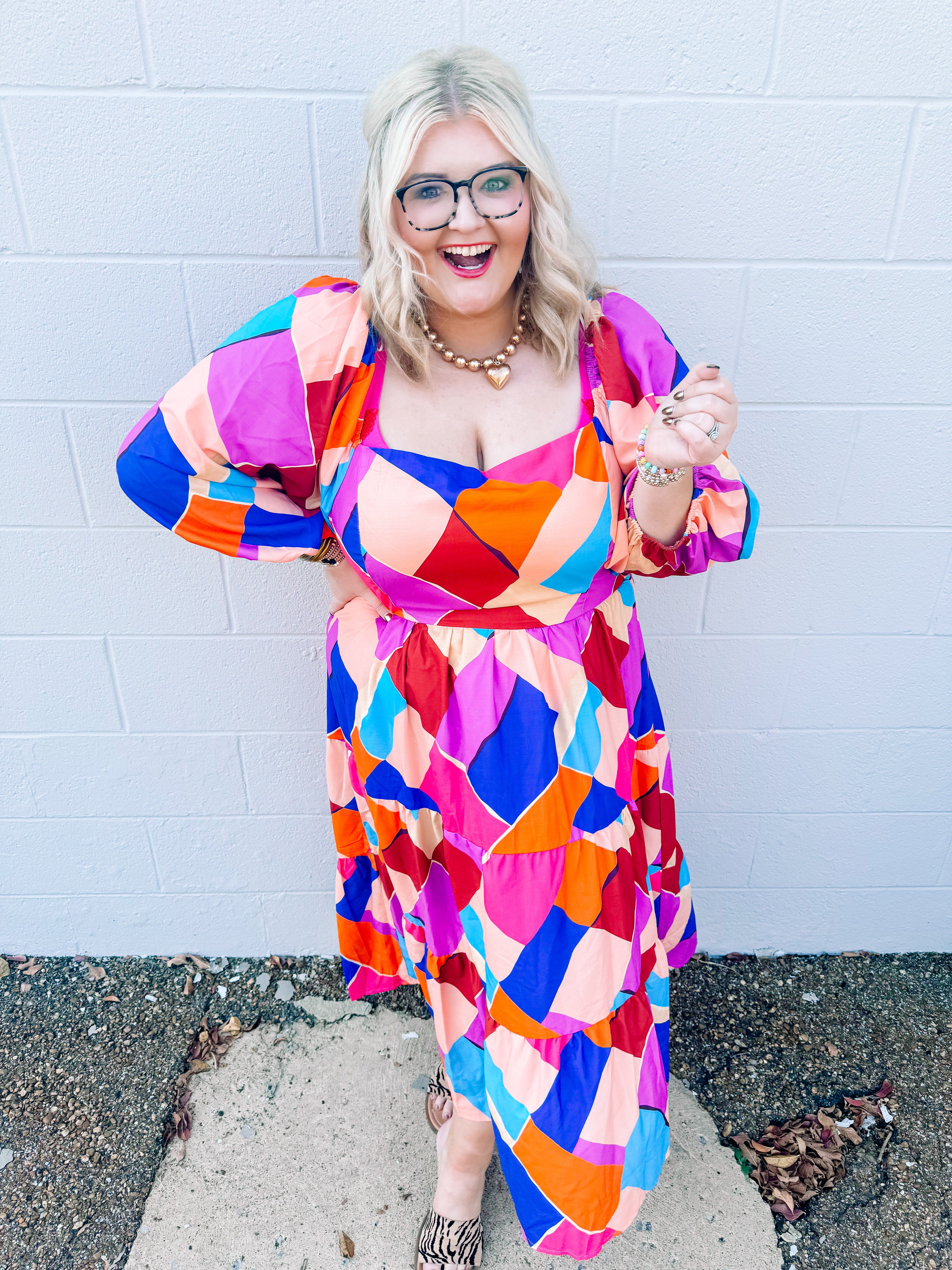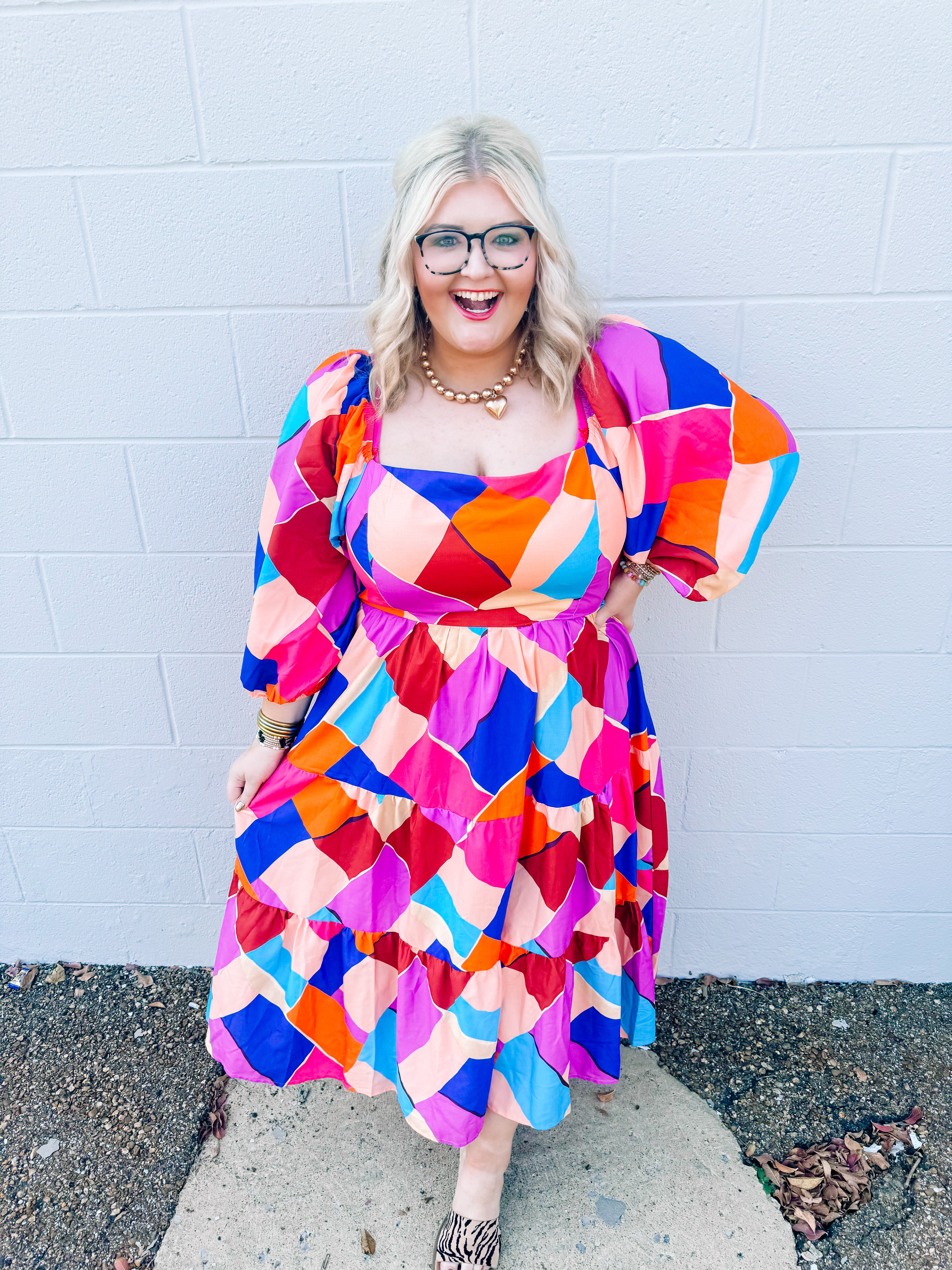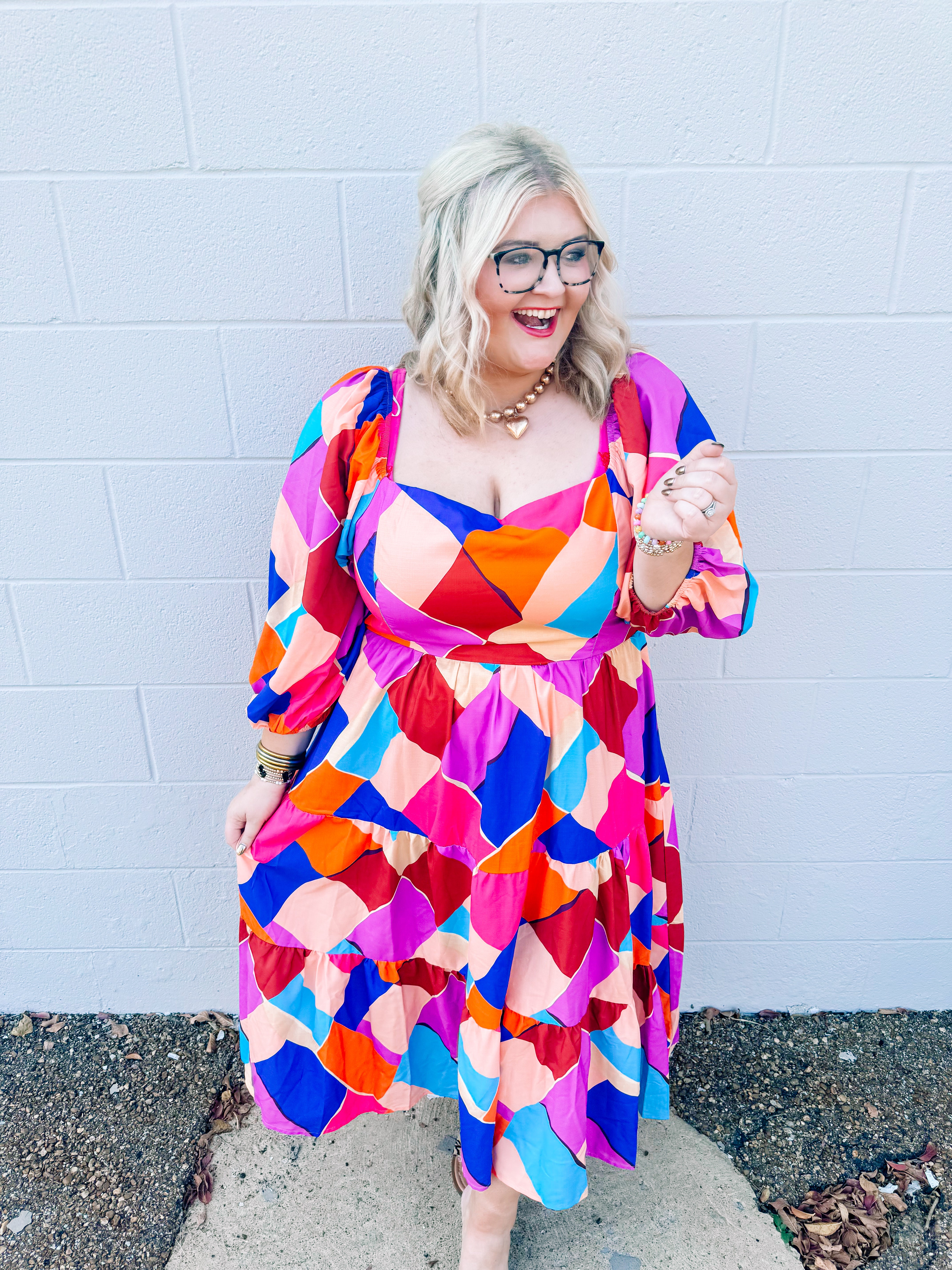 The Thankful Colors Dress blends sophistication with a touch of whimsy, featuring a square neckline and charming 3/4 sleeve detail. The elbow-length sleeve adds a playful yet refined touch, while the tiered midi skirt provides graceful movement and elegance. Ideal for both daytime events and evening soirées, the Thankful Colors Dress is set to become your new go-to for effortless style and versatility.