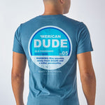 Comet blue short sleeve shirt with the phrases 'Merican dude', 'Old fashioned boys club', and 'Warning: May possess minty fresh breath and a killer personality'. Simply Southern logo below and on left chest. 100% cotton. Unisex sizing.