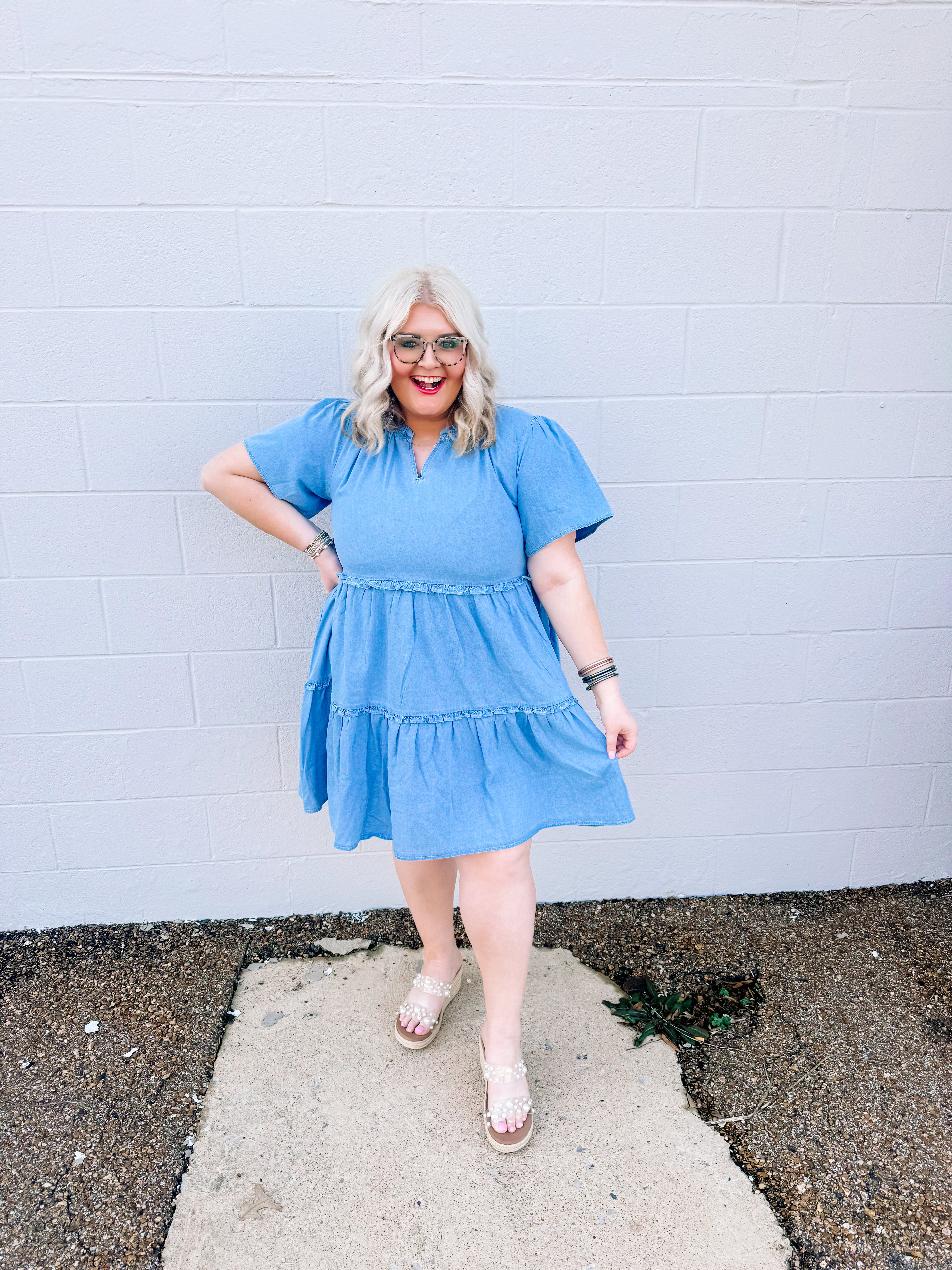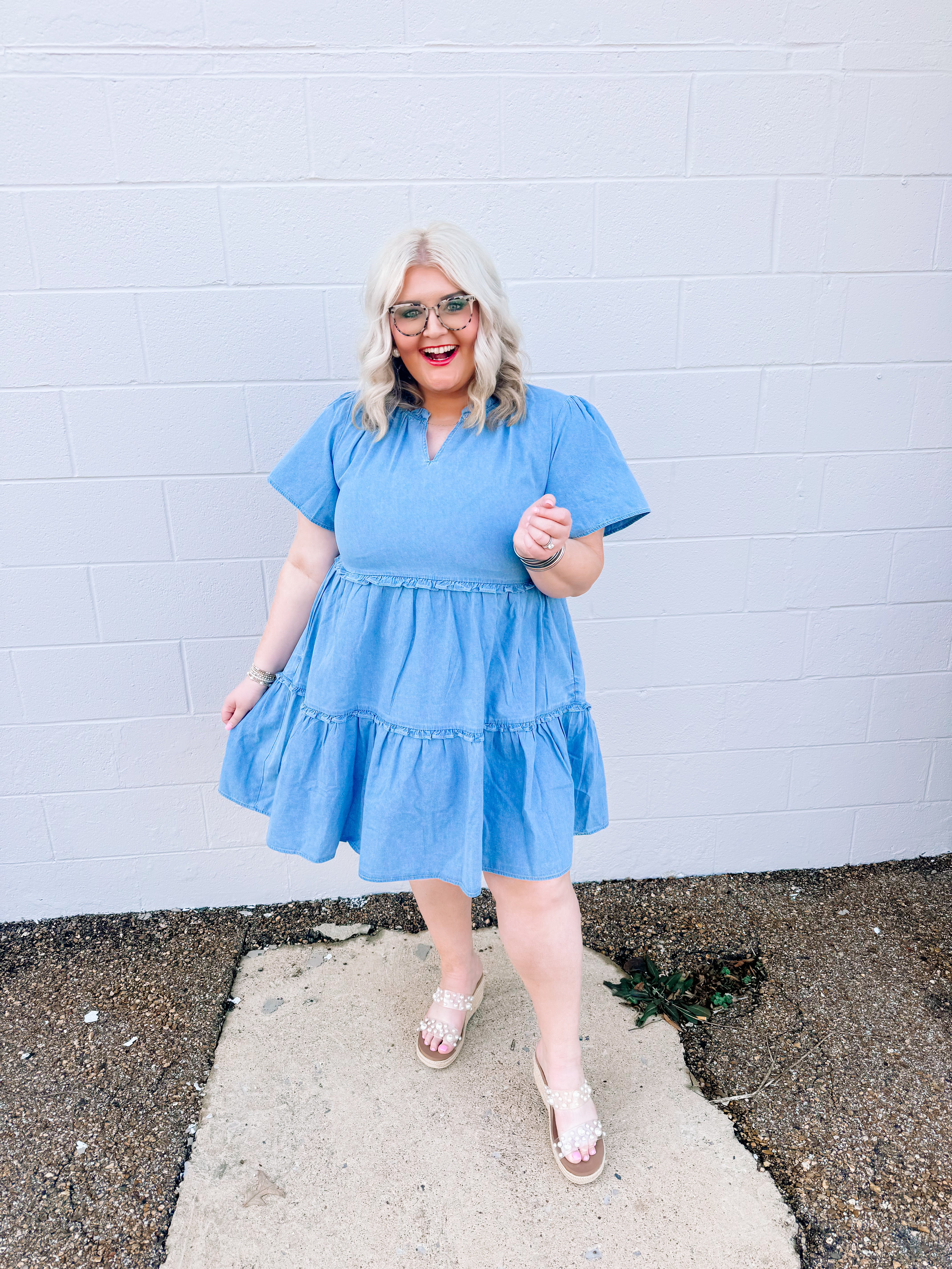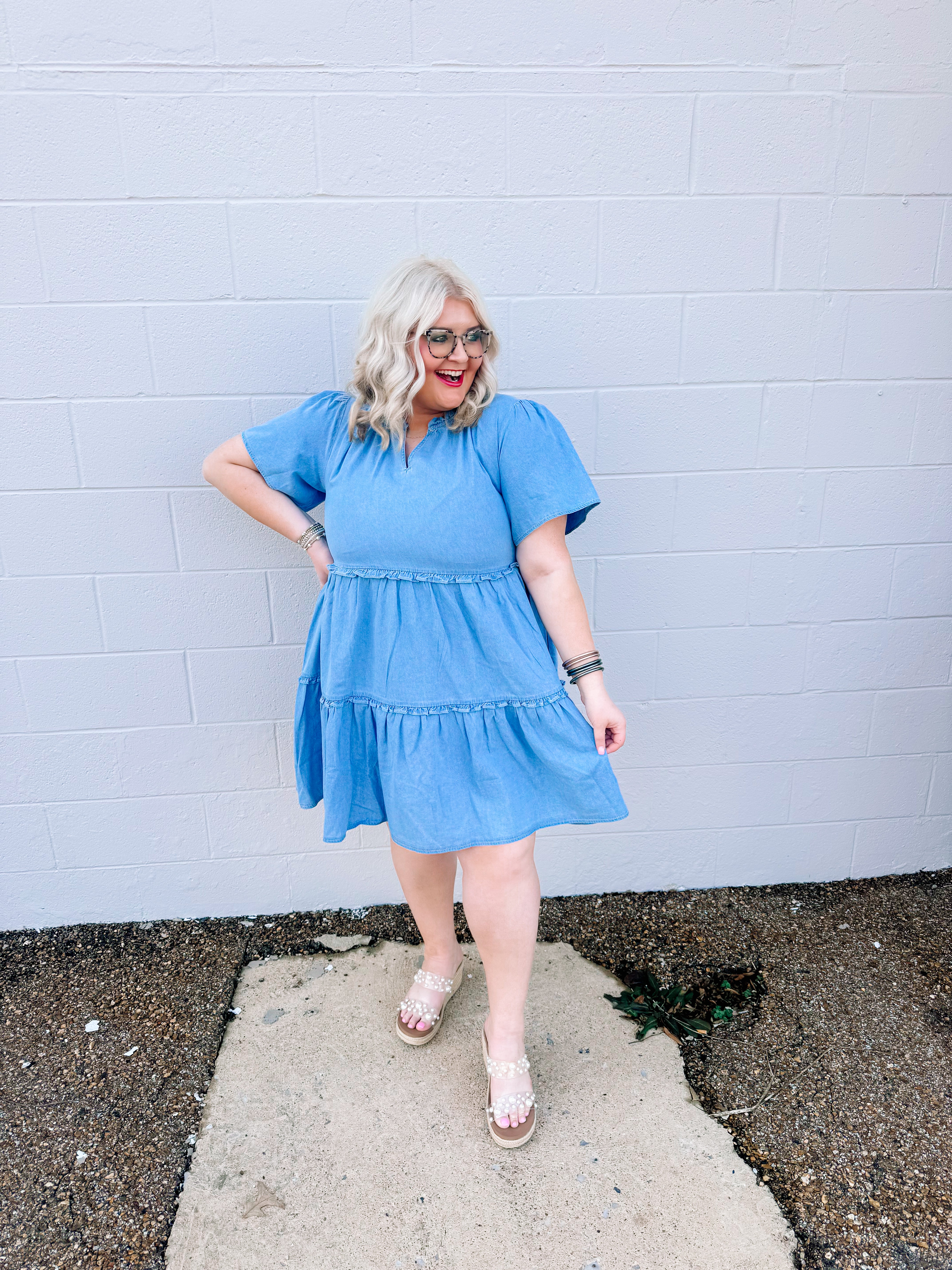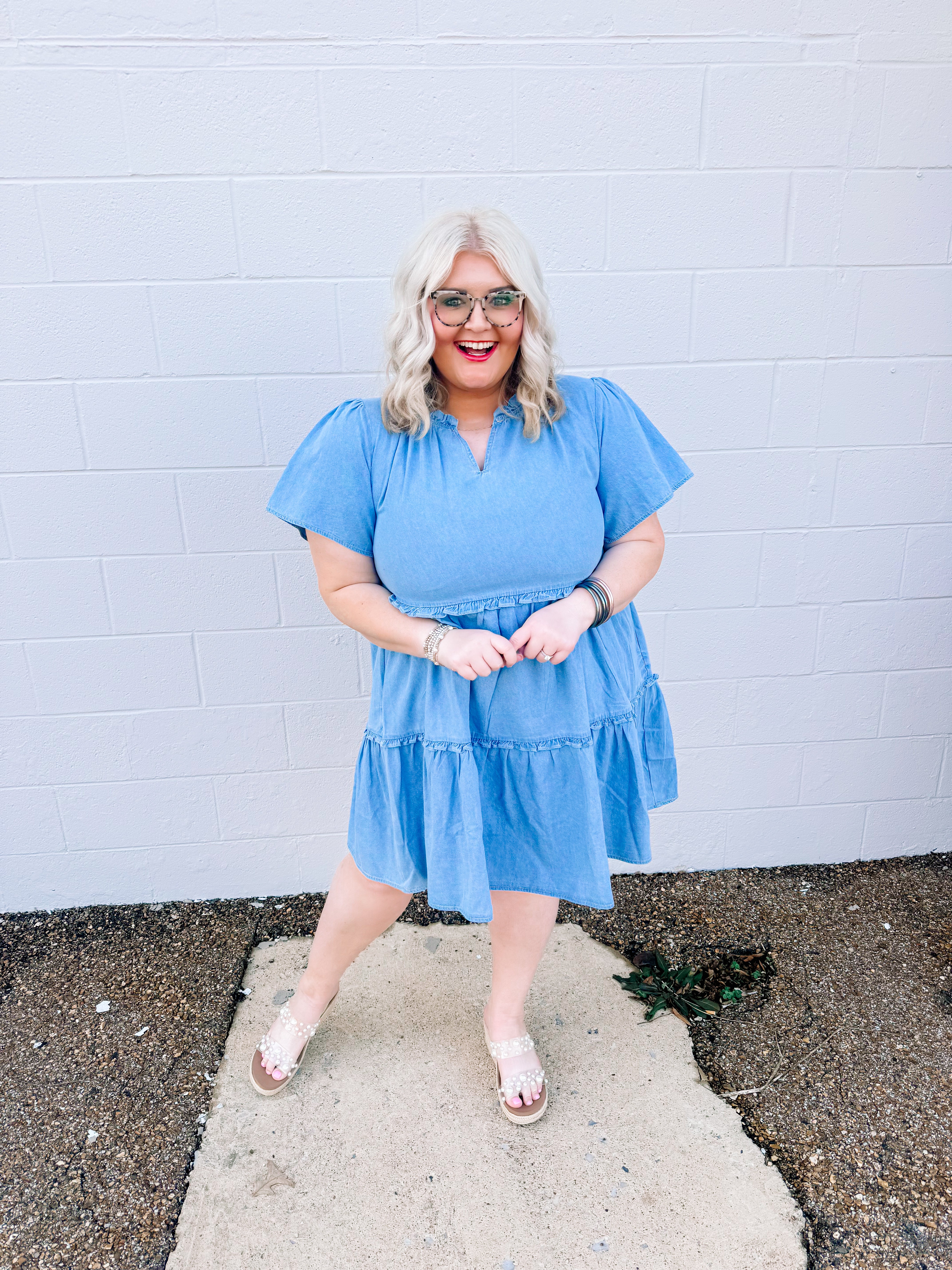Every girl needs denim dresses in her life. We have a washed denim babydoll dress with ruffle details. This is perfect for the Spring and summer and any country concert or country event.