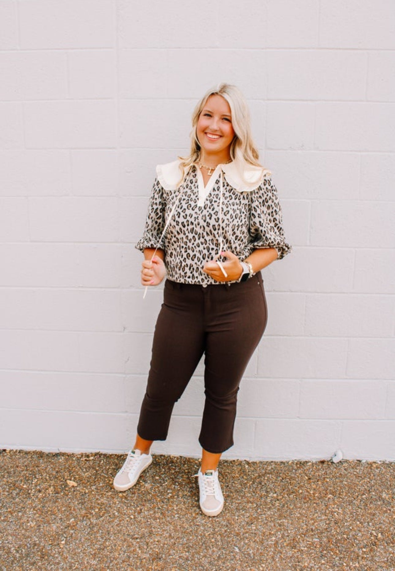 Introducing our Leopard Ruffle Top, a gorgeous fall fit!